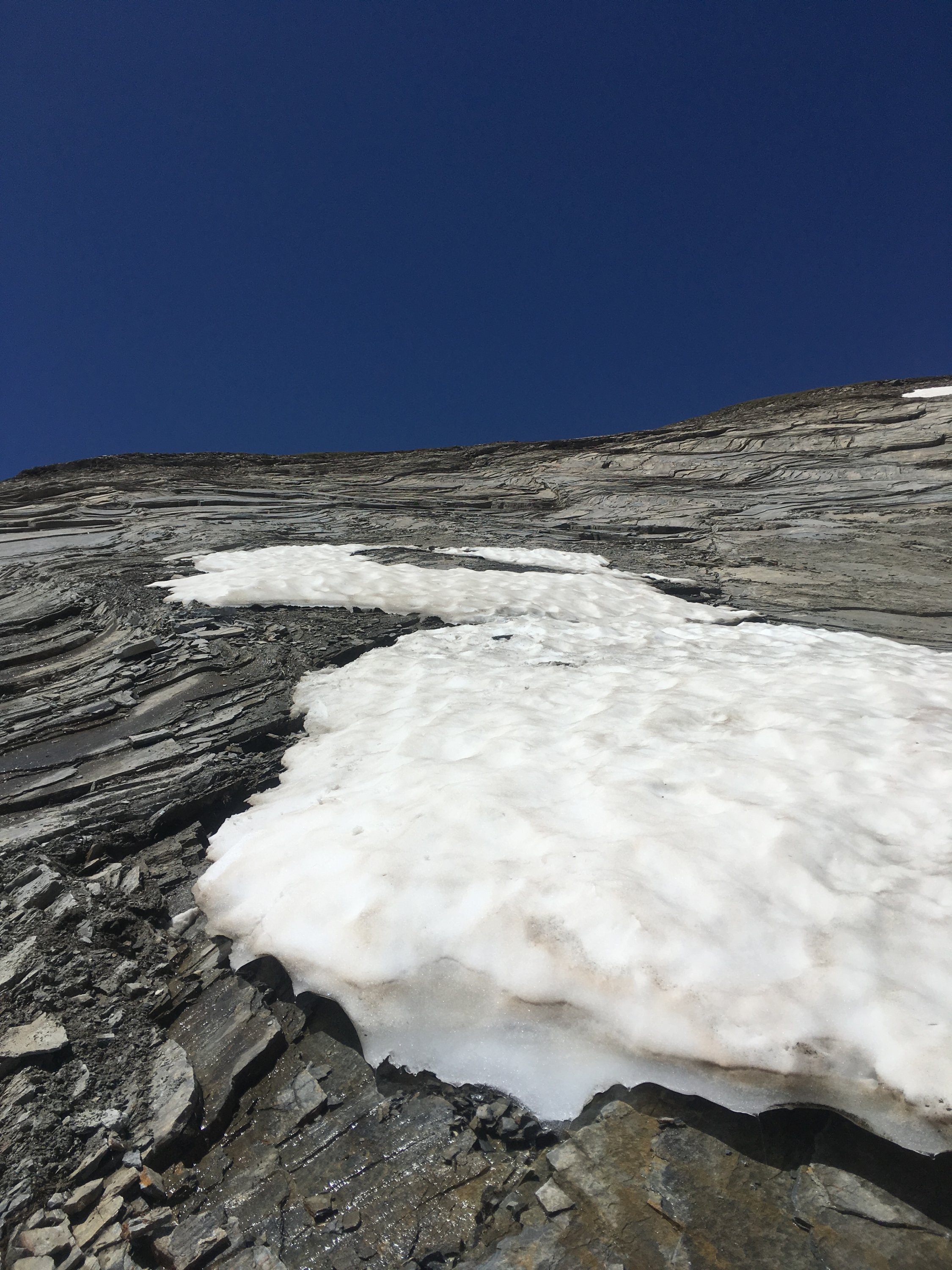 Start um 9.00 San Bernardino, 16 Grad, windstill. Auf rot-weiss markiertem Wanderweg bis Cassina da Vignum. Nun dem blau-weiss markiertem Weglein bis P. 2382. Nun über Geröll weiter bis zum ersten Schneefeld Höhe 2500. Der Schnee war noch hart und ich bin darum direkt Richtung Gipfel, war keine gute Idee und wieder zurück, in der Zwischenzeit war das Schneefeld weich und so bin ich ohne Schwierigkeiten bis Grat und weiter bis Gipfel. Gute Markierungen auf der ganzen Route. Abstieg wie Aufstieg.