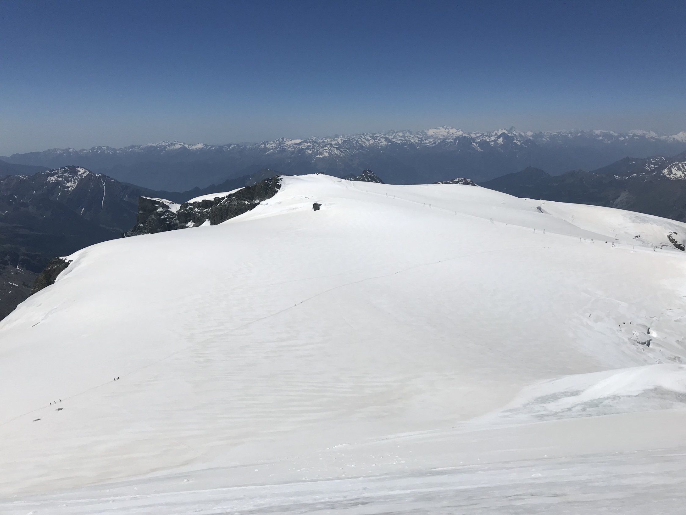 Good news: es gibt momentan keine nennenswerten Spalten! Das ist nicht jedes Jahr so, manchmal sind die Spalten oder der Bergschrund recht gefährlich.