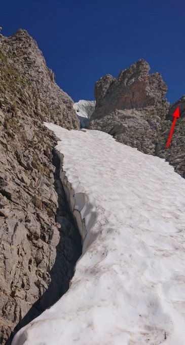 Im Bereich kurz vor Rosstocklücke hats noch recht viel schnee drin. Jedoch mit Bergschuhen und Stöcken kein Problem. Um dem Schnee in der Lücke auszuweichen gingen wir ins rechte Couloiur (mit den blauben Punktmarkiterungen).