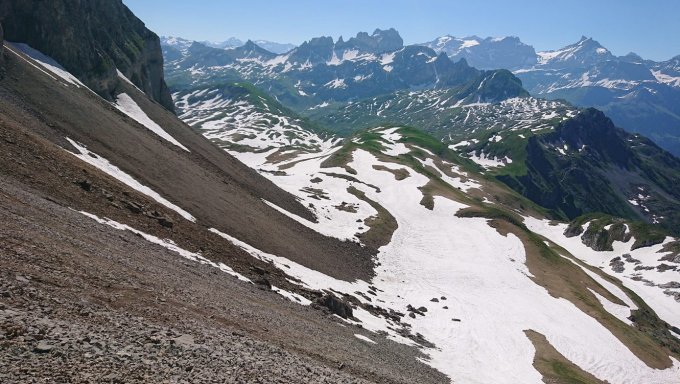 Richtung Spilauergrätli ebenfalls noch Schneefeld.