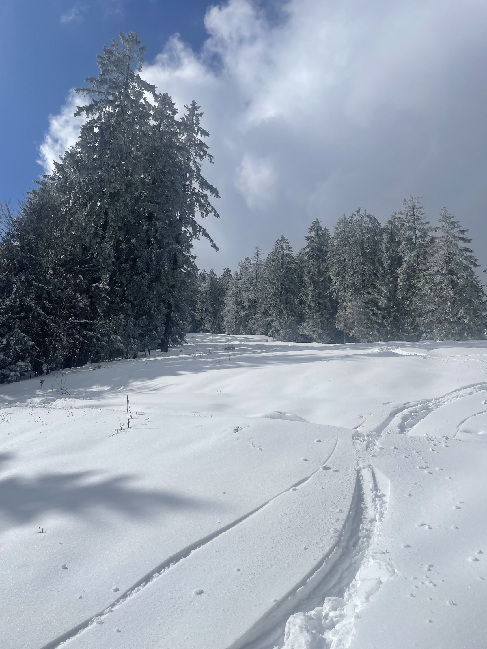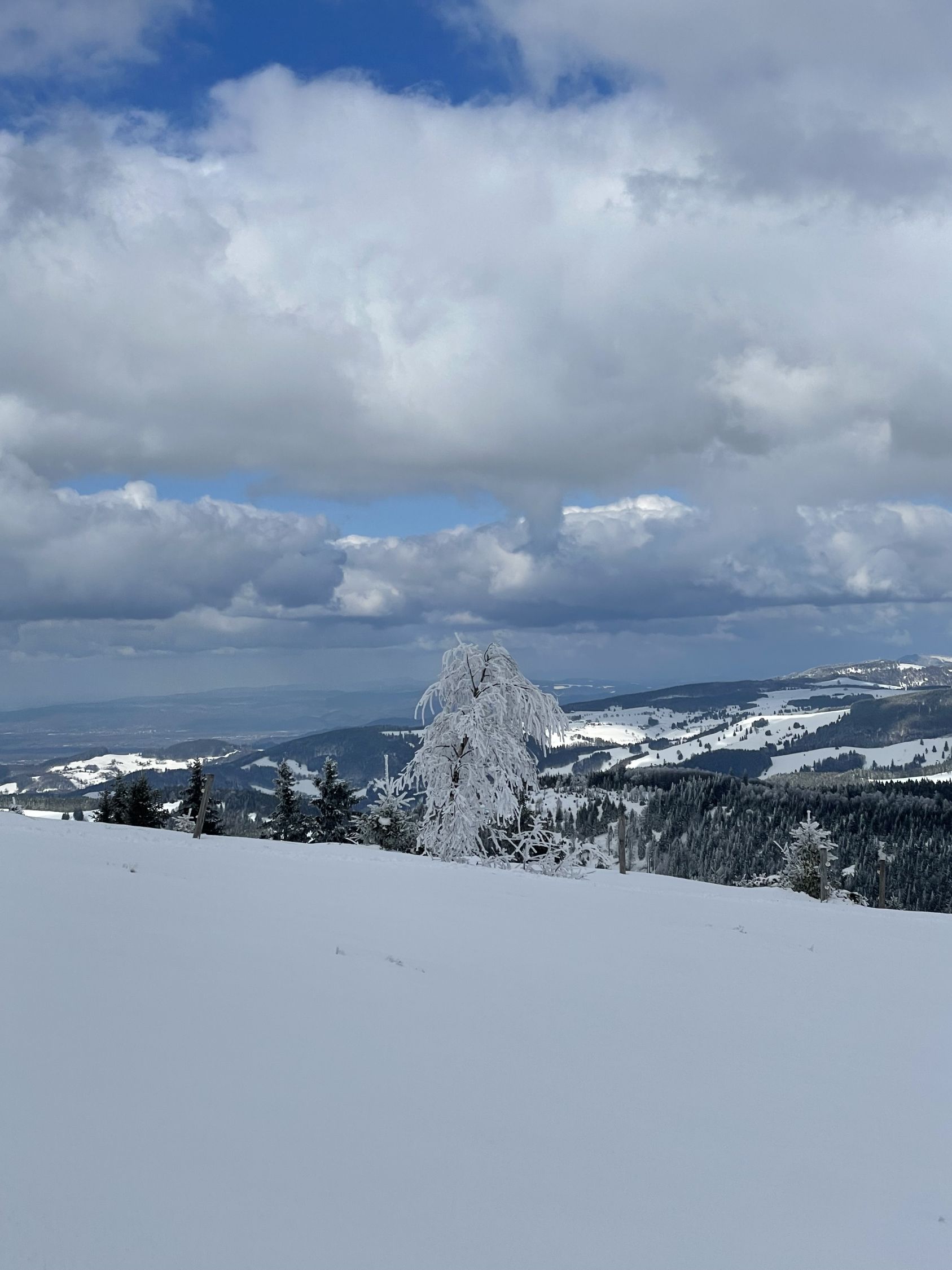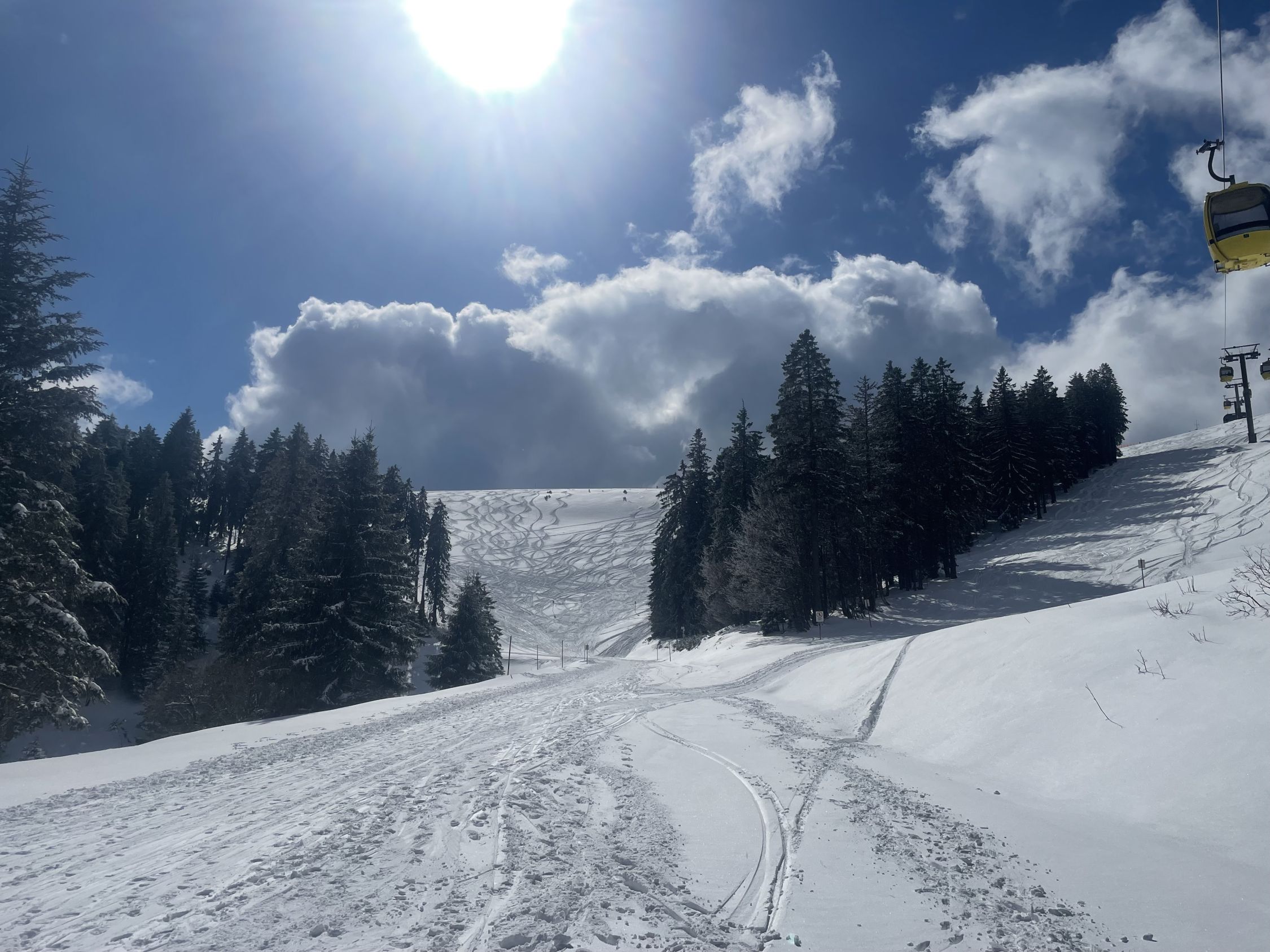 Viel Neuschnee im Schwarzwald! In Untermulten ca 30 cm, oben je nach Windexpo gegen 50 cm. Ohne Unterlage, was die Abfahrt teils etwas erschwerte. Oben aber gut zu fahren, siehe Fotos, dann die fast leere Piste sowieso gut und ganz unten dann eher in der Aufstiegsspur geradeaus, da man sonst aufm Gras steht.