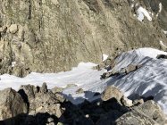 Waren die einzigen an diesem Tag. Mit dem Schnee muss man den Einstieg in die Flanke schon finden. Auf der Rippe nach dem Hochkar sind wir den Steinmännern zu weit bis auf den Grat gefolgt, der Übergang zum Südgipfel ist dort oben anspruchsvoll. Die Querung der Rinne war uns zu heikel, daher umgedreht.
