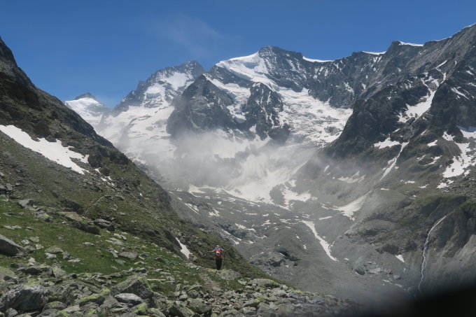 Am Samstag gegenüber am Grand Cornier ein kleinerer Felssturz auf den Glacier de Zinal beobachtbar.