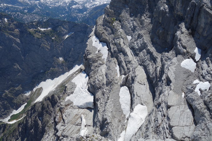 Die Schneefelder in der Wand kann man umgehen bzw. sie stören nicht.
