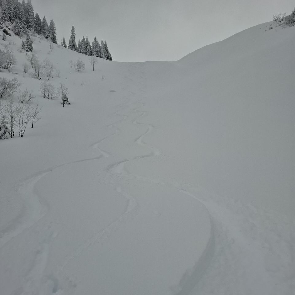 Hatten auf ein längeres "Fenster" gehofft. Die Tour war trotzdem super. Pulver Pulver Pulver vom Feinsten. Und die Hänge die wir fuhren - mega.