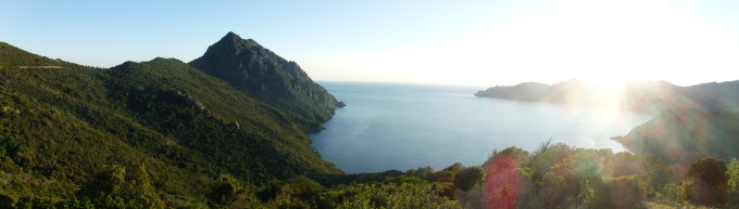 zum schönen Gipfel-Duo bieten sich passende Meeresbuchten-Bilder an zwischen dem Golf von Porto und Golf von Girolata.