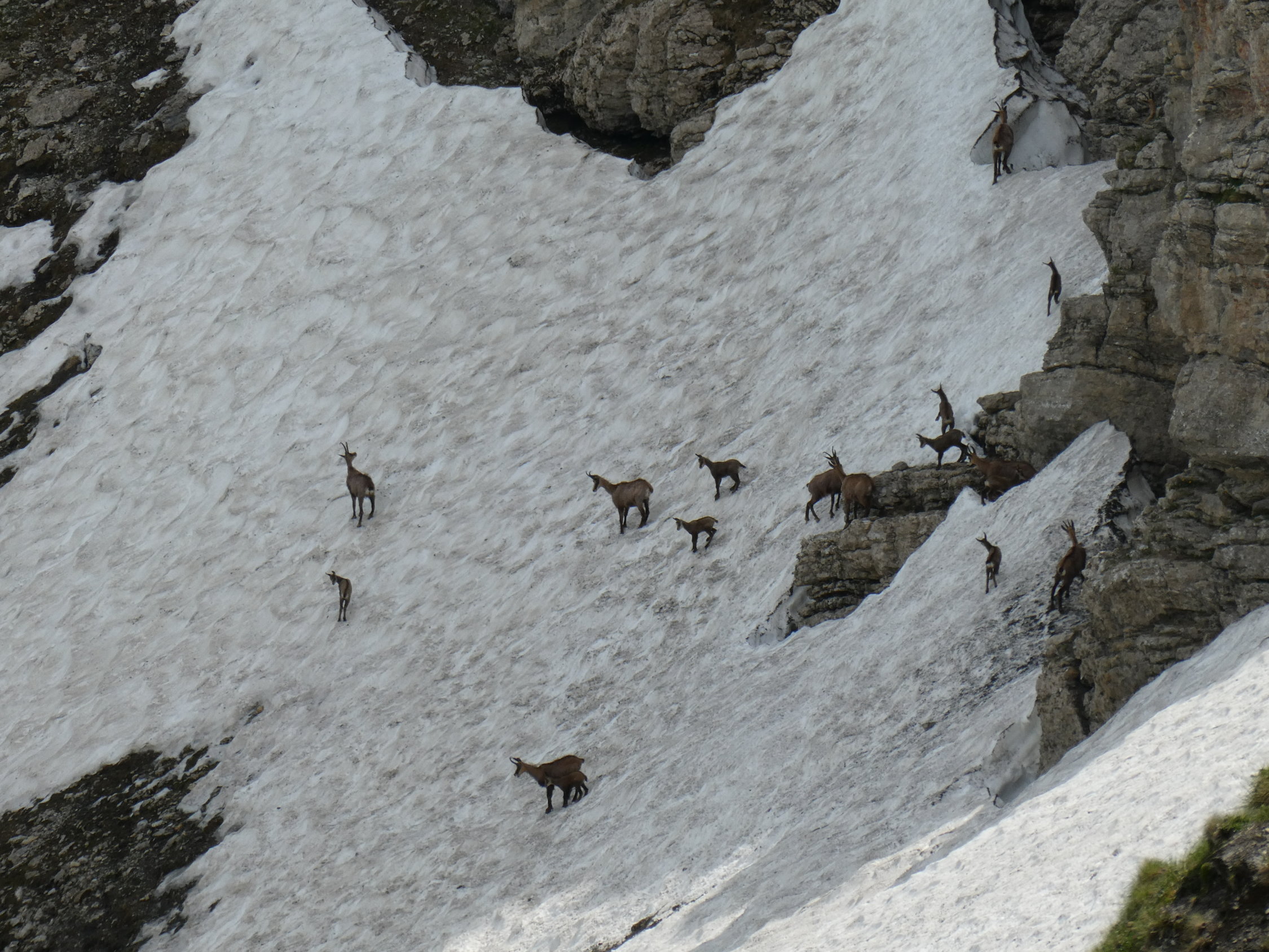 Die ganze Route ist mittlerweile schneefrei und bestens begehbar. Die Felsen am Gorfion waren heute trocken, was für die kurze Kraxelei in der Rinne nicht unwichtig ist.