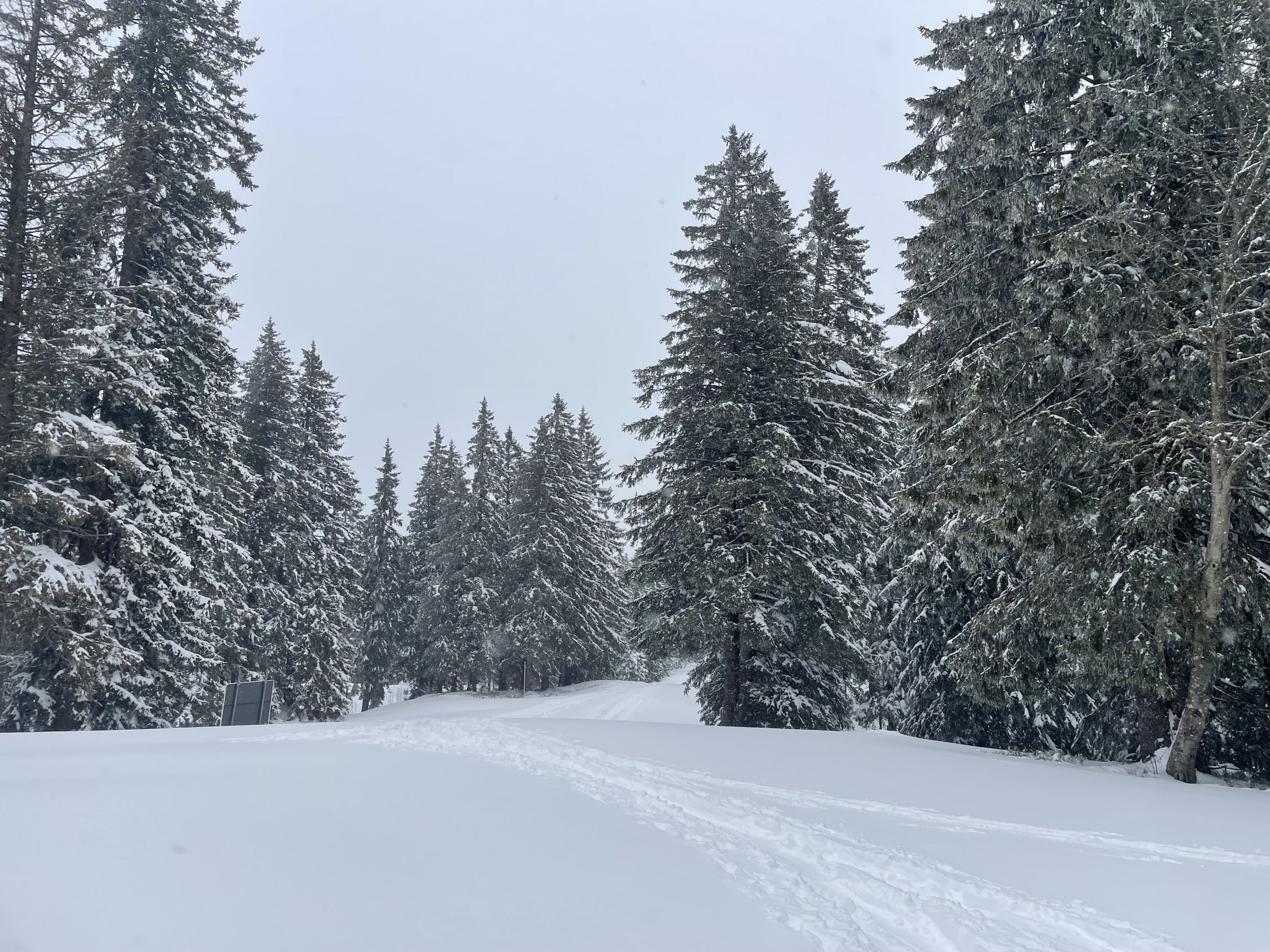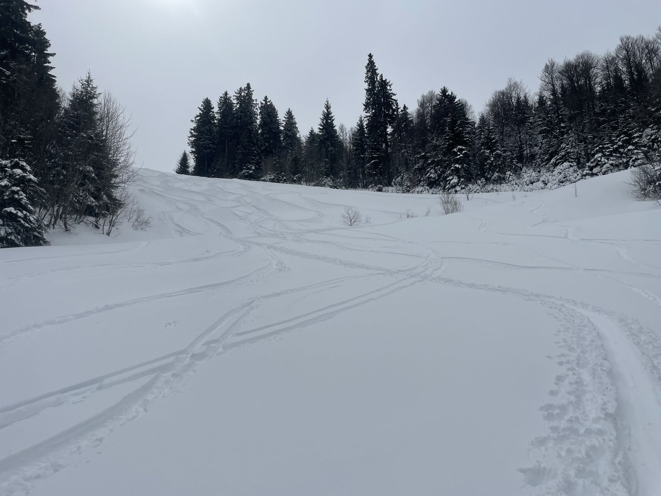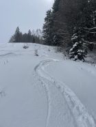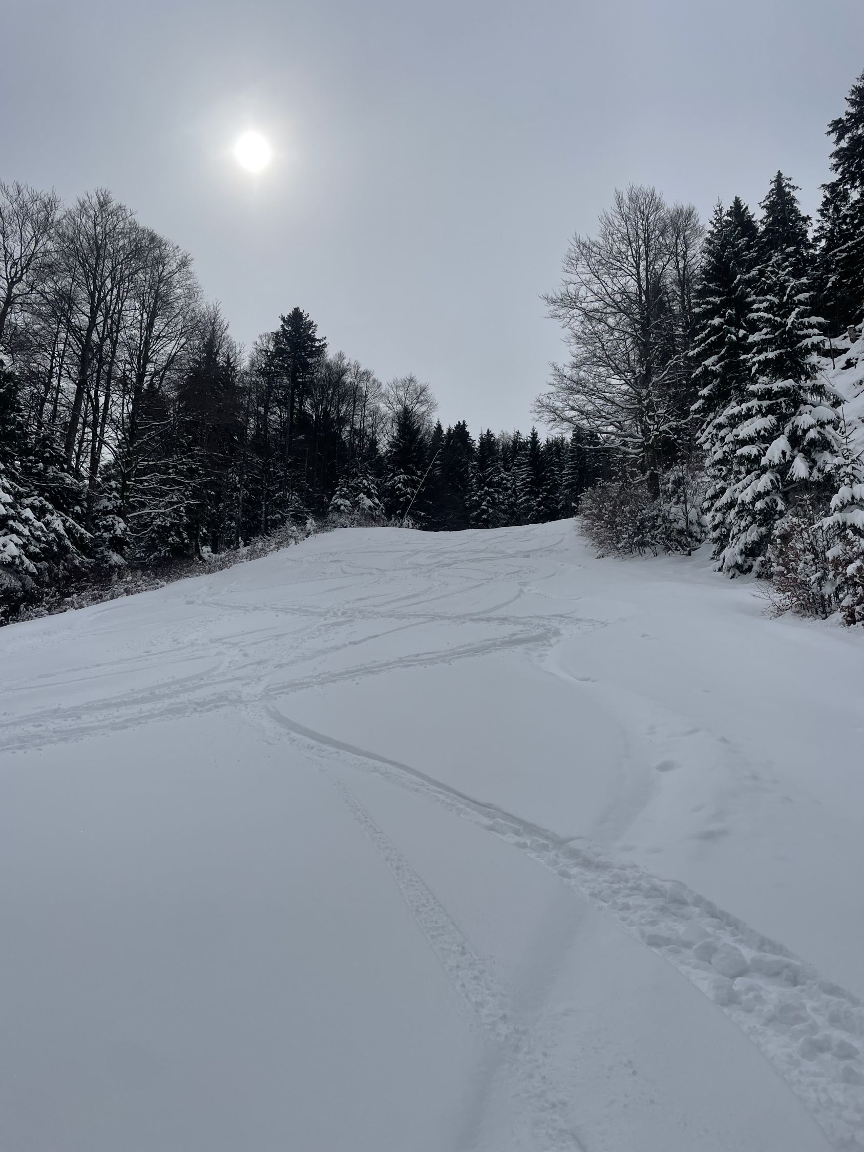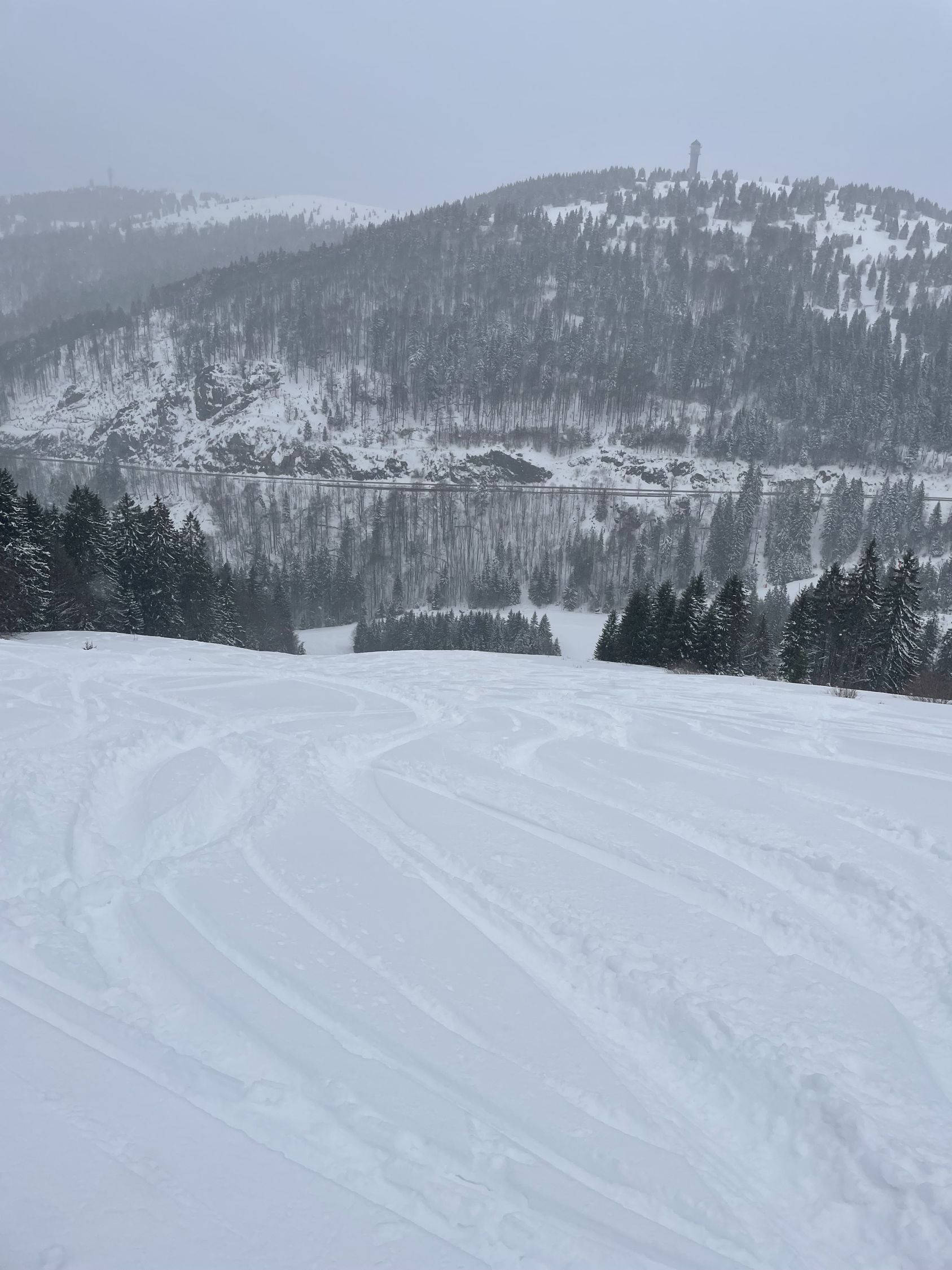 Von der Talstation an mehr als genug Schnee, etwa ab Beginn Silberwiese auch mit Unterlage. Zu Beginn etwas pappig, gegen oben immer pulvriger. Wetter um 0, fahle Sonne hinter Wolken und unterwegs einsetzender leichter Schneefall. Sehr schöne Winterstimmung. Einige Tourengänger im Gebiet unterwegs, die wie ich die guten Verhältnisse nutzen wollten. Nach dem Aufstieg erste Abfahrt sehr hübsch direkt Richtung Fahl, etwa ab Mitte Wiederaufstieg, da ich den Silberwiesenhang noch fahren wollte. Zu spät, der war schon ziemlich zerfahren. Wäre gescheiter zweimal hinten runter. Trotzdem sehr schön heute. Mehr Schnee als meistens diesen Winter. Dass das Skigebiet Feldberg bei diesen Verhältnissen zumacht, verstehe, wer will. Ich begreife, dass die Saisonkartenbesitzer verärgert sind. Uns kann es jedoch nur recht sein :-)
