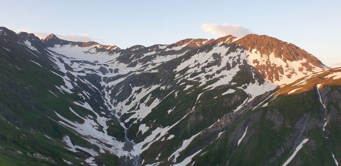 Start der Tour am 6.30 Uhr beim Furkatunnel, mit +9° die Temperatur heute kälter als auch schon, die Ski mussten 2-3 mal kurz getragen werden bis zur Militärstrasse, auf dem Muttgletscher war der Schnee heute gefrohren, unten wenig Büsserschnee oben eher mehr, aber kein Proplem da er schnell weich wurde, der Bergschrund beim Skidebot ist noch nicht zusehen, für den Aufstieg in der Flanke zum Grat waren Steigeisen und ein Eispickel hilfreich, das Wetter war in Richtung Westen recht Wolkig.