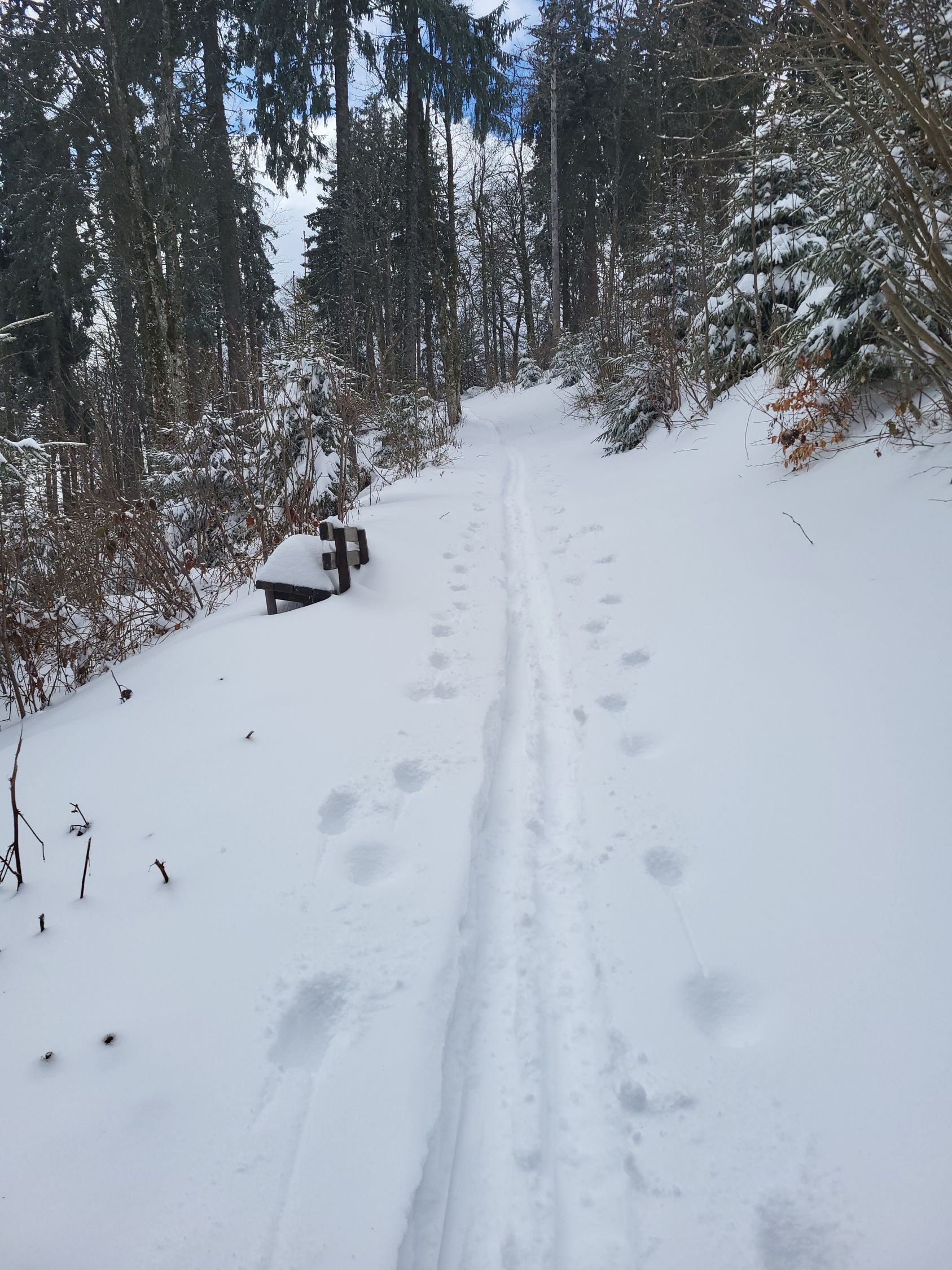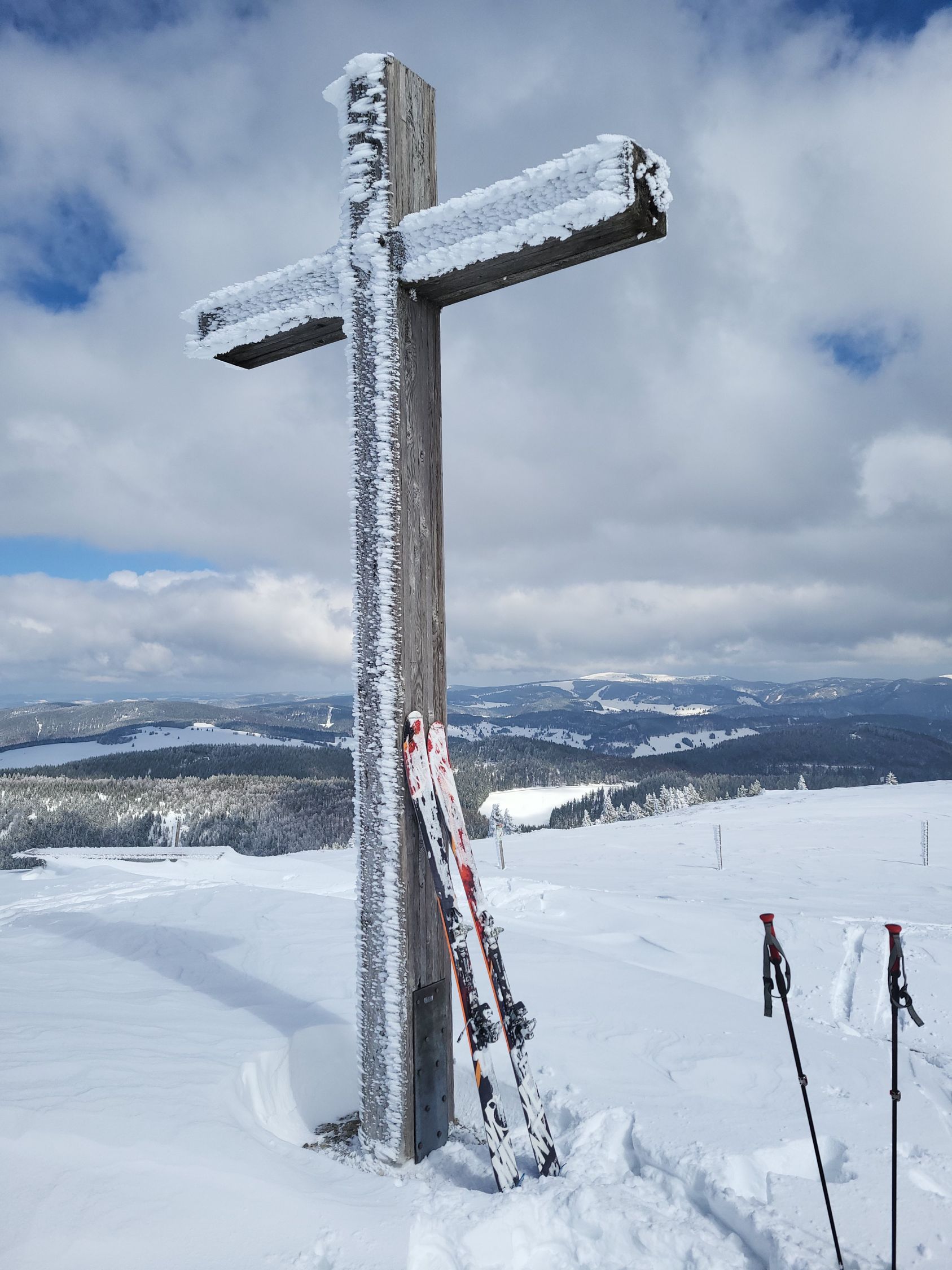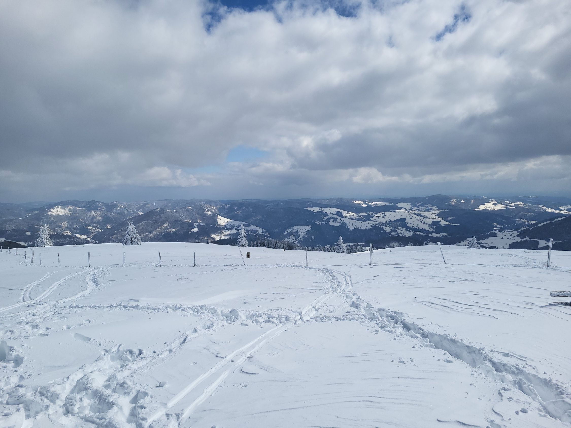 Mehr Schnee als den ganzen Winter 25/26. Leider ohne Unterlage was das Abfahren etwas speziell machte. Vom Gipfel zum Belchenhaus nur geradeaus möglich mit Stöckeln.