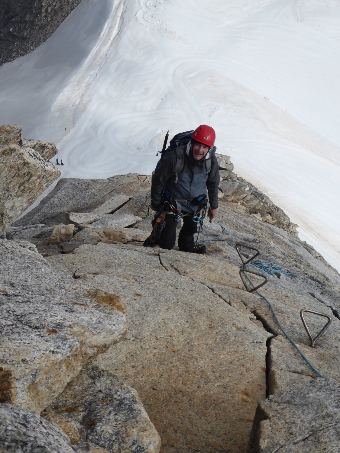 Von der Wildlahnerscharte guter Trittfirn bis zu Einstieg in den Felsgrat.