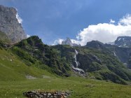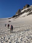 Traverse Schlossberglücke - Glatt Firn: Ab und zu kommen Steine aus der Spannort Nordostflanke, etwas Abstand halten.