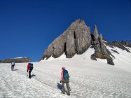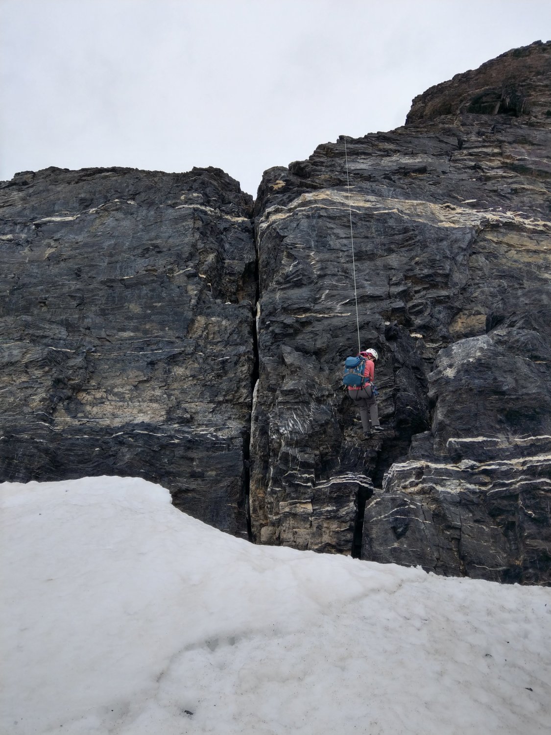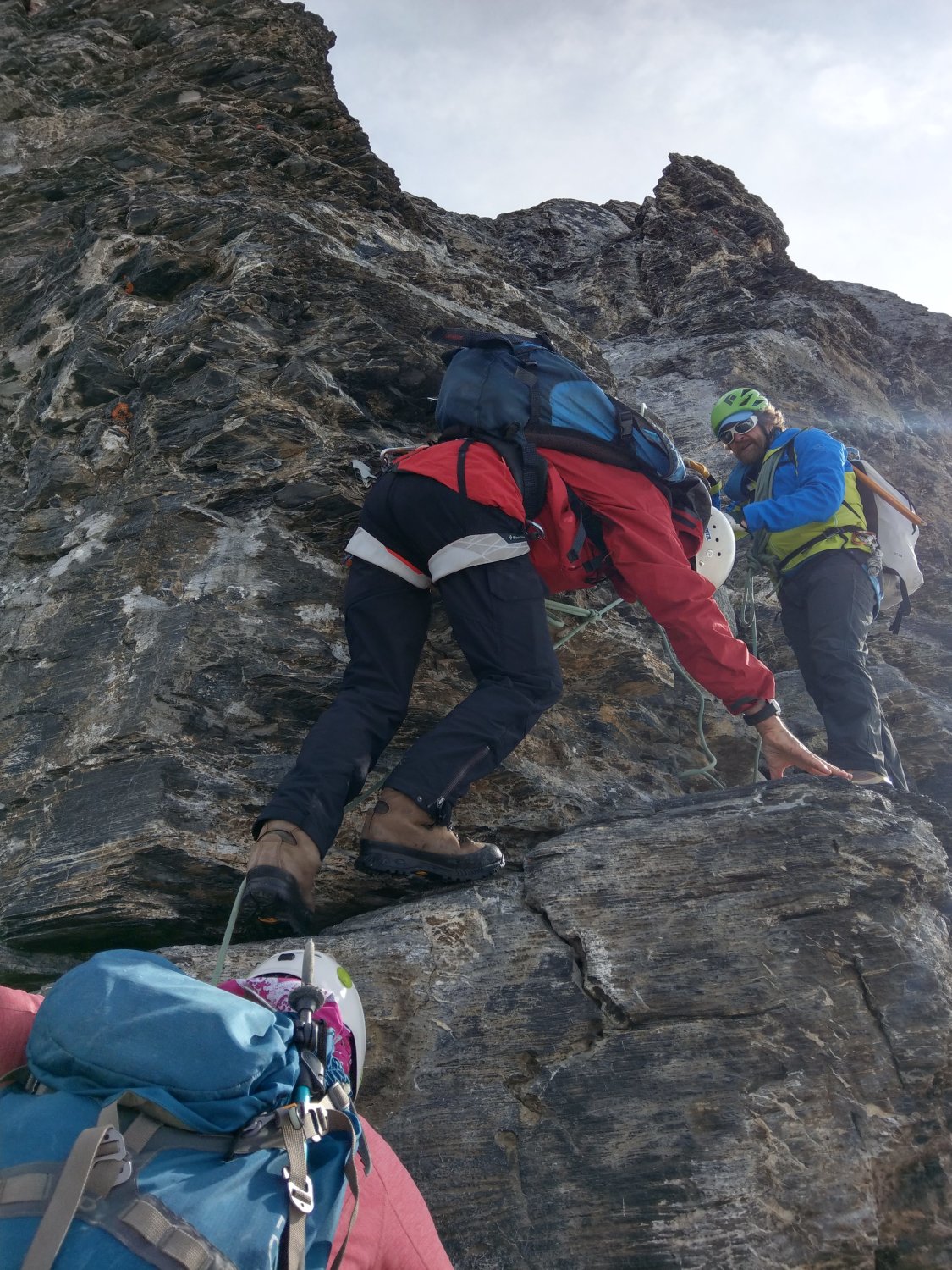 Abstieg: Abseilstelle auf Gletscher benutzt (40 m Seil). Zurück zum Fixseil geht auch.