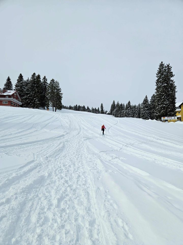Start um 10Uhr bei ca. -2C am Feldbergpass. Schneemenge und Qualität besser als erwartet, ca. 20cm feiner Pulver.