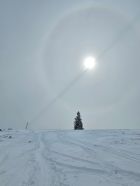 Wenig Leute unterwegs. Wir waren alleine am Gipfel! Im Aufstieg zum Gipfel tolle Stimmung mit Sonnen-Halo. Feldberg und auch der Hang zw. Krunkelbach und Spiesshorn sahen gut aus.