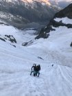 Top Verhältnisse. Zur Zeit kann zur Fuorcla Prievlousa noch durch die Schneeflanke aufgestiegen werden, es muss nur ein kleiner Schrund an geeigneter Stelle überschritten werden.