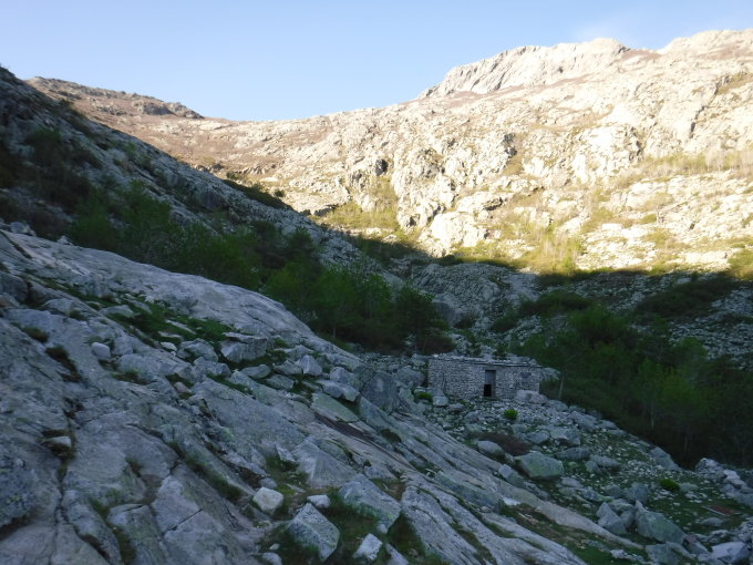 Habe am Schluß der Tour die in der IGN-Karte 4251OT einzeichnete Abkürzung vom Forstweg Sentier d’Orsu longu zum Forsthaus versucht. Dieser Pfad ist inzwischen so zugewachsen, dass man sich weglos durch den Wald meist rechts nahe vom Tobel seinen Weg suchen muss. War machbar. Ist jedoch nicht empfehlenswert. Der kürzeste Rückweg zum Parkplatz am Forsthaus führt über den P 1107 und 2 km Teerstraße.