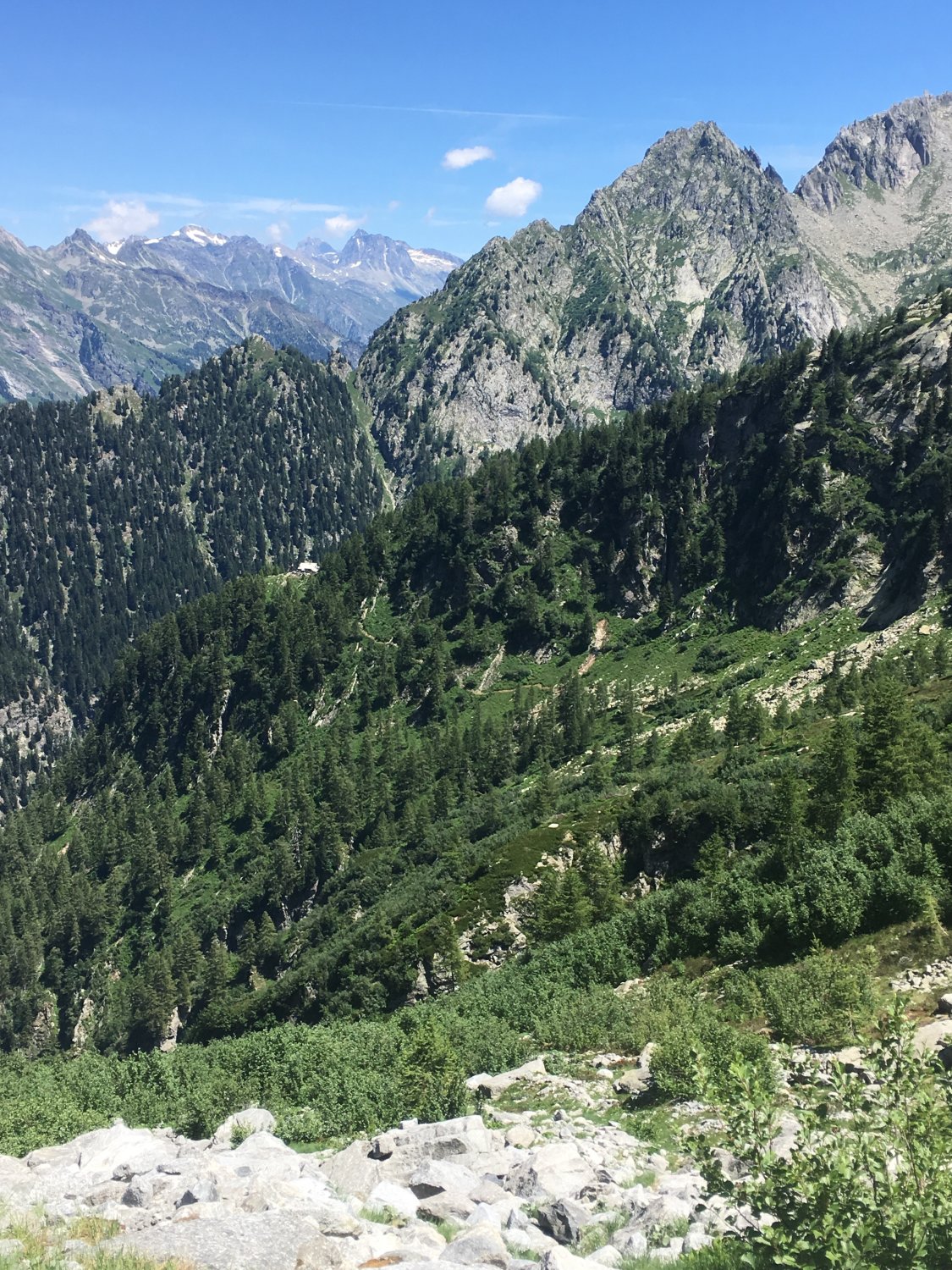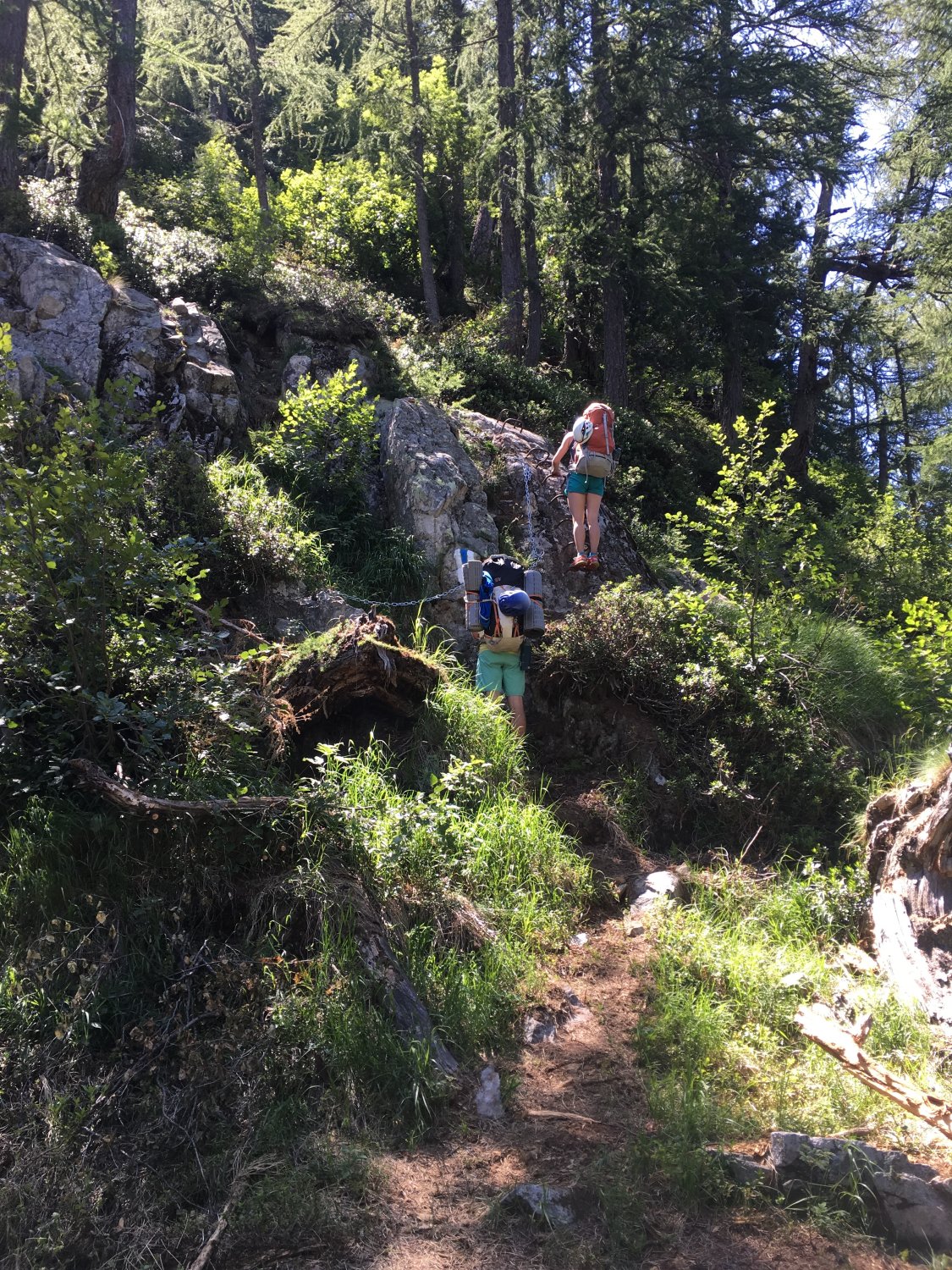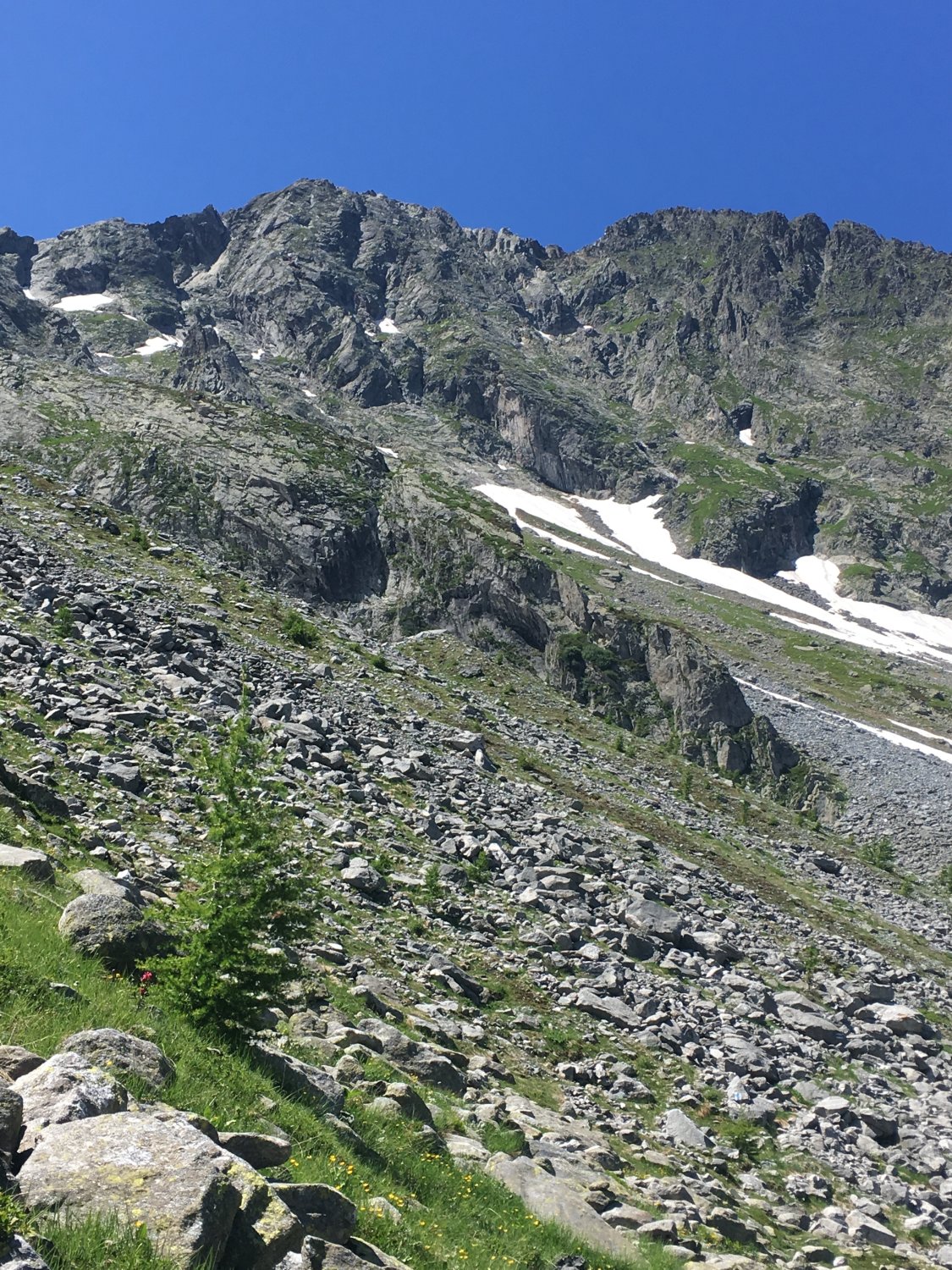 Start um 8 Uhr neuer Parkplatz überhalb Bondo. 12 Grad, windstill. Ich bin den rotweiss markierten Wanderweg zuerst auf alter Bondasca Strasse und kurz vor kaputter Brücke steil bis Luvartigh 1553 m und noch etwas weiter auf dem Wanderweg. Ab Höhe 1600 m fängt der neue Hüttenweg an, der sich in auf und ab Richtung Osten durch unübersichtliches Schroffengelände unterhalb Salecina auf etwa 1750 m befindet. Mit Ketten und Eisenstangen ist der Weg bestens abgesichert, man hat kein Problem mit der Orientierung. Ab Höhe 1800 m erreichte ich das wunderschöne Trubinasca Gelände westlich der Schlucht. Nun geht es über Blöcke bis auf Höhe 2180 m zum Trubinasca Weg und wieder hinunter zur Sasc Furä Hütte. Aus zeitlichen Gründen machte ich beim Trubinasca Weg auf Höhe 2180 m kehrt.