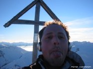 Gute Fernsicht auf dem Gipfel. Wenig Schnee im Gipfelhang.