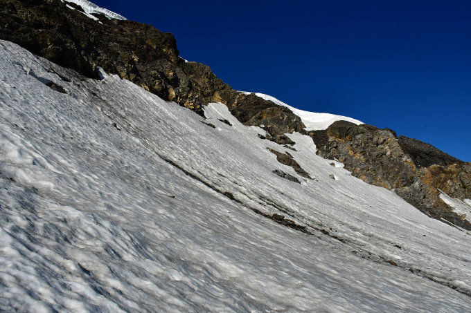 Das Gut bezieht sich auf den Teil bis zum Frühstücksplatz. Der Frühstücksplatz Quergang war nicht gespurt und oberhalb dessen flogen einige Steine. In den letzten Jahren hat sich der Gletsche nicht nur zurückgezogen, sondern auch verdünnt. Der Übergang am Frühstücksplatz wird hierdurch nicht gerade besser begehbar.