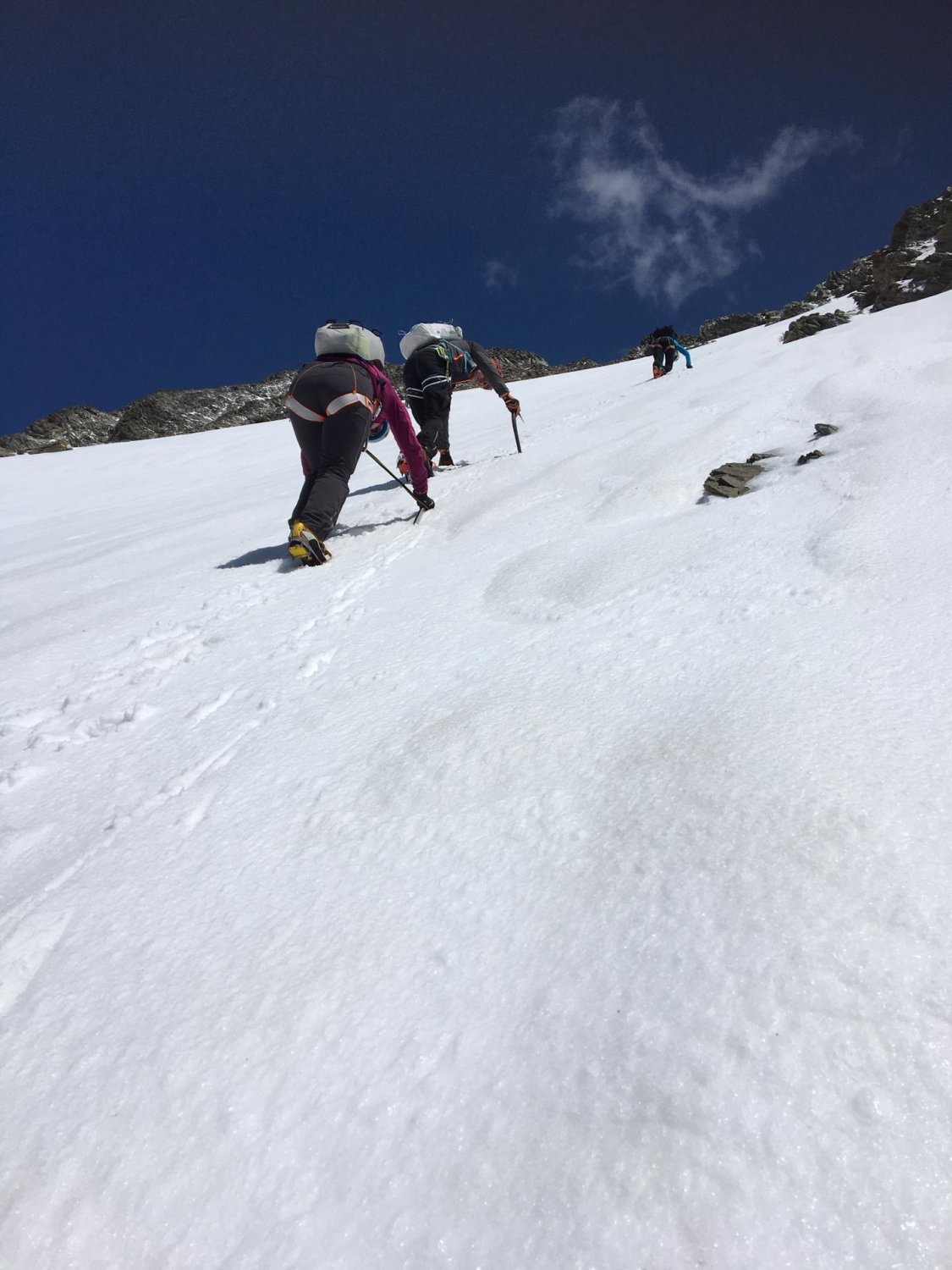 Der Obere Hüfifirn ist noch sehr gut eingeschneit und Top zu gehen, der Sattel bei Punkt 2820 m konnte ohne Schwierigkeiten erreicht werden. Auf dem Felsgrat hatte es dann noch ziemlich Schnee von den Gewittern/ Niederschlägen von letzter Woche, die Route wurde dadurch noch etwas alpiner. Abstieg via Normalroute nach Hinterbalm, der Abstieg durch die Südwestflanke erfolgt mehrheitlich in sehr festem Trittschnee bis ca. 2500 m.