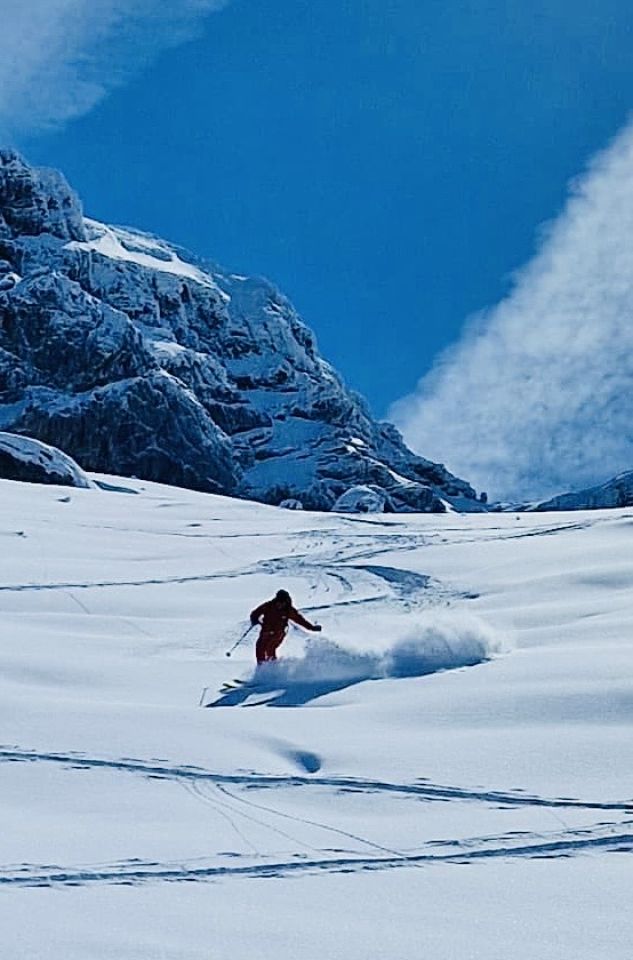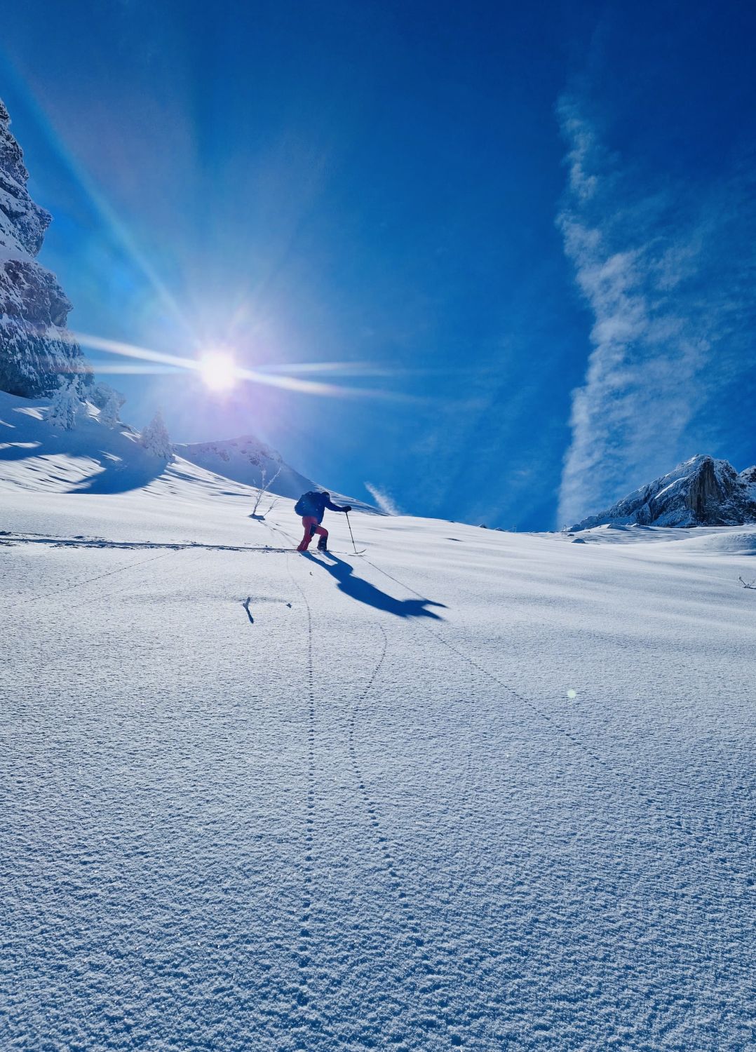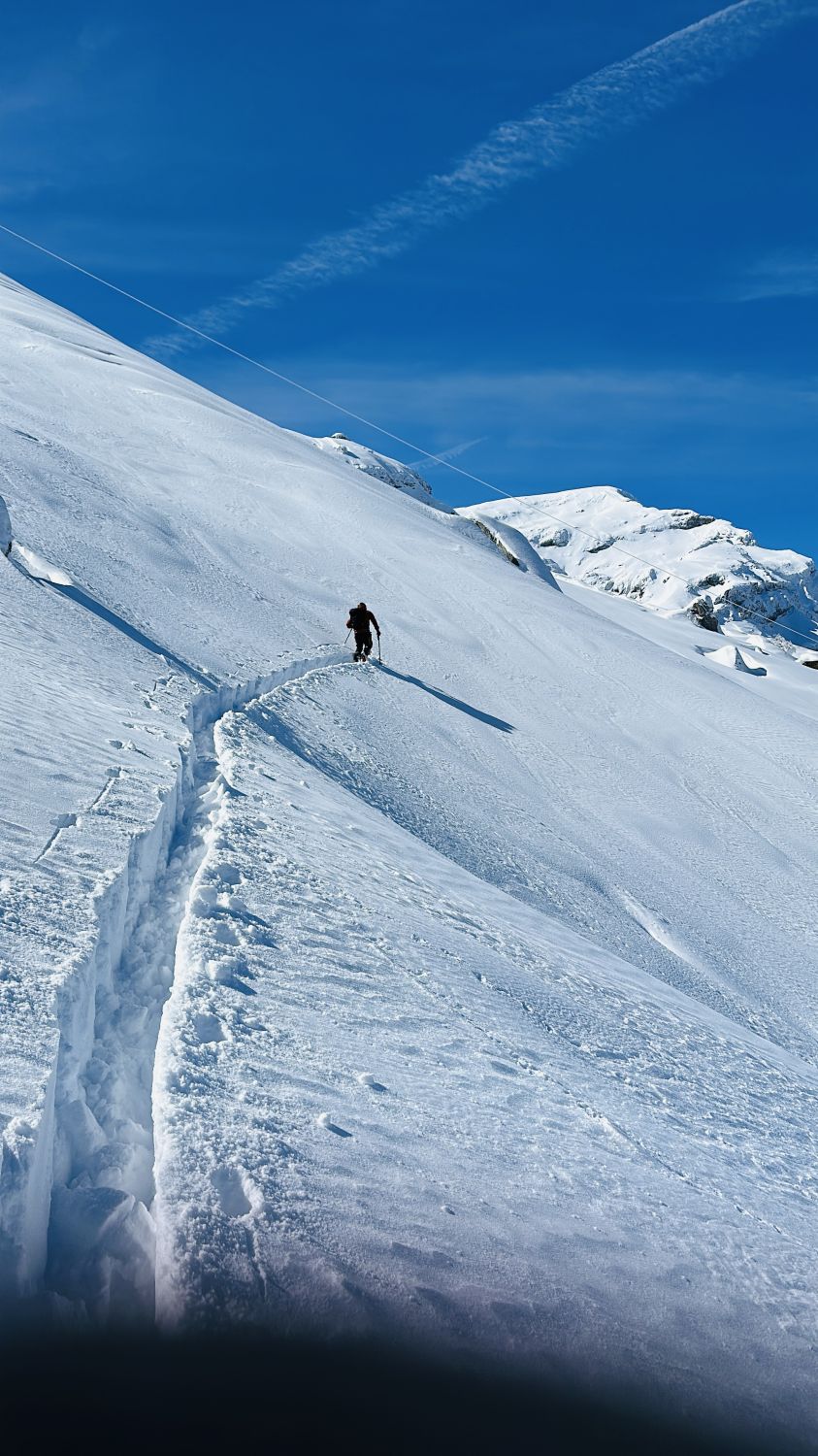 Traumhafte Winterverhältisse auf der ganzen Route angetroffen. Wir waren die Einzigen im Gebiet und mussten ab Haldi (1080 m) alles selber spuren. In flächigen Bereichen lag gut 50/60 cm Pulverschnee, welcher anstrengend zu spuren war. Die Steilhänge in der Stefelalp sahen bereits entladen aus und hatten vermutlich vom Freitag eine ca. 10-15 cm Auflage. Ab 1800m wieder tiefer fluffy Powder. Die heiklen Passagen unter dem Chli Fulen gingen gut. Immer wieder sahen wir vom Wind angehäufte wellenförmige Schneeverfrachtungen. War nicht ganz ohne. Den Gipfel liessen wir aufgrund der vorangeschrittenen Zeit (das spuren hat Zeit gekostet) aus. Aber auch weil es vom Grätli zum Gipfel viel zu flach war und zuviel Schnee lag, was kein Fahrerlebnis in der Abfahrt in Aussicht stellte. Abfahrt ab Grätli (2251 m) hammermässige First Lines in fluffy Powder. Ab 1500 m etwas pappiger Pulverschnee mit Bremswirkung. War toll! Kaum im Skihaus eingekehrt rollte auch schon die Schlechtwetterfront heran.