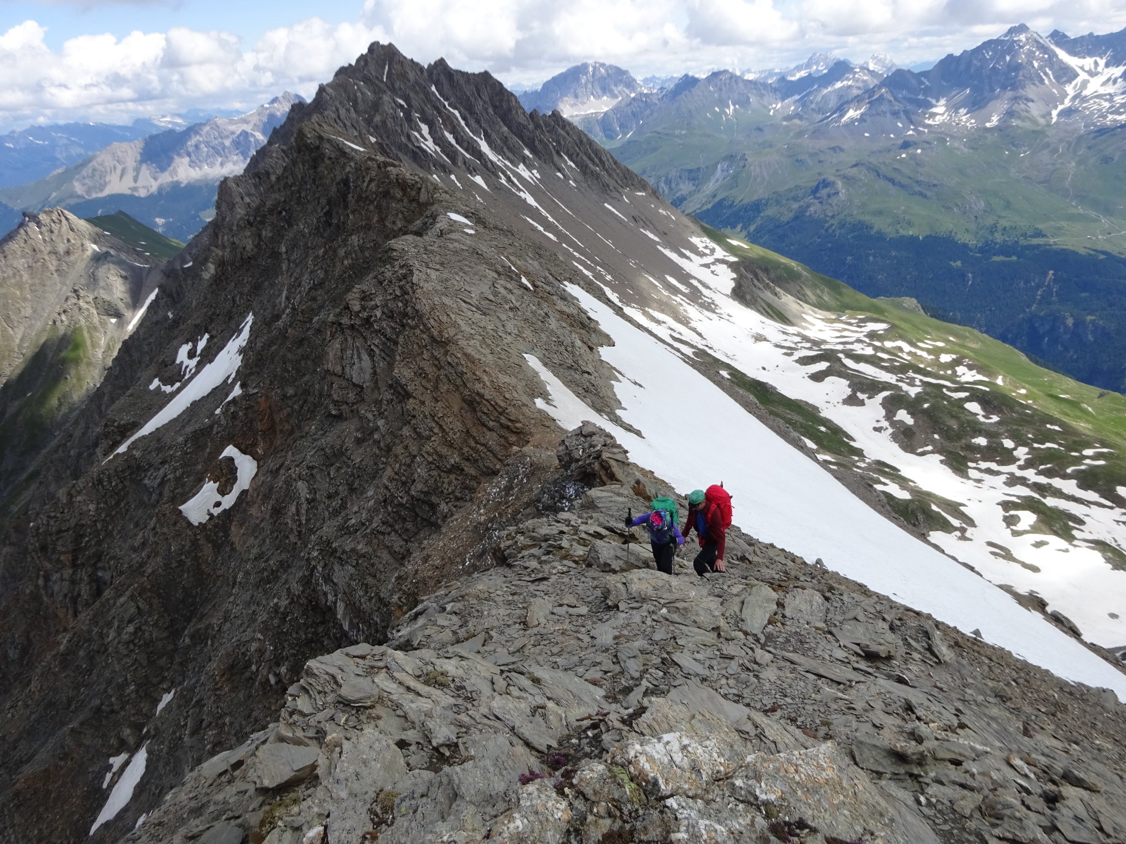 Am Grat lag auf der Nordseite stellenweise Schnee. Die Felsen waren aber im Grossen und Ganzen trocken.
