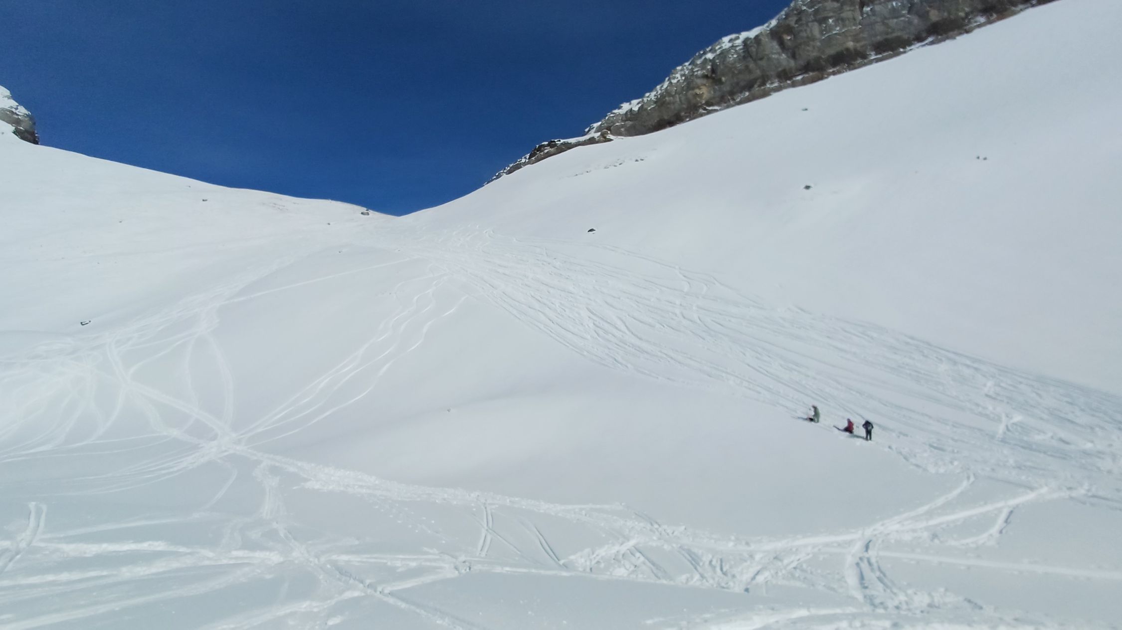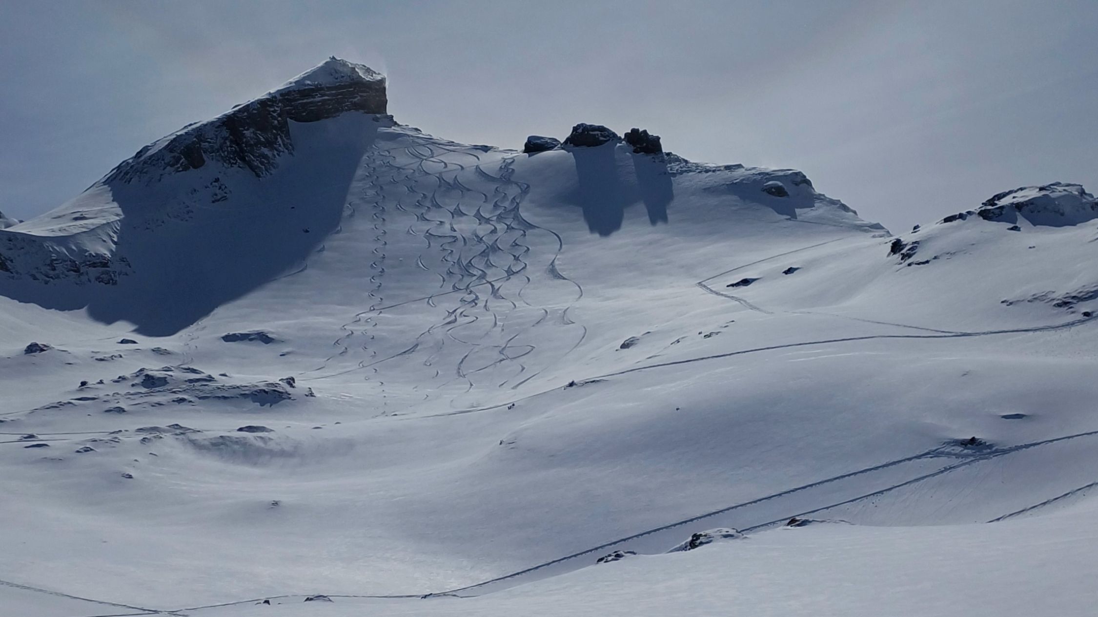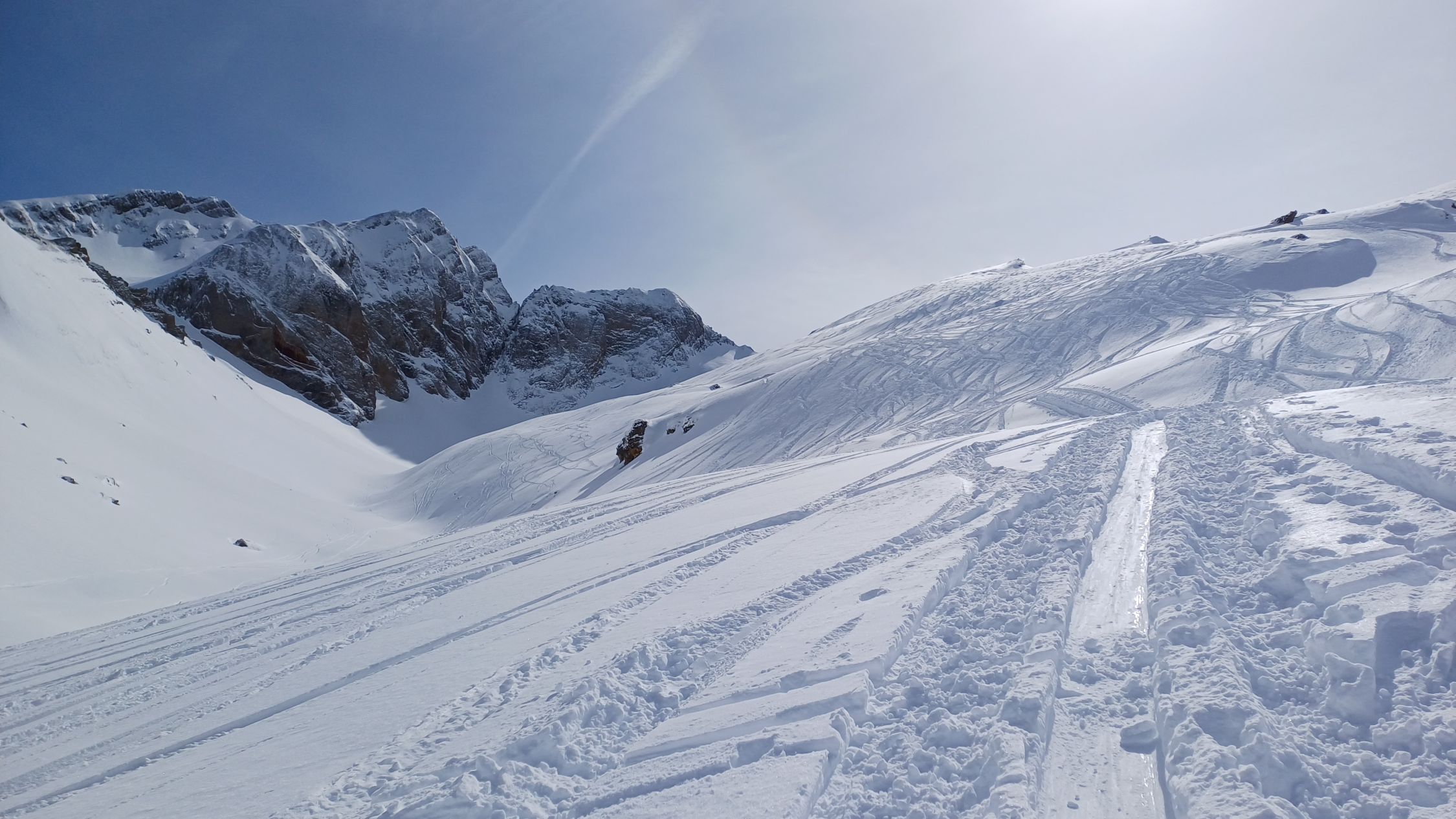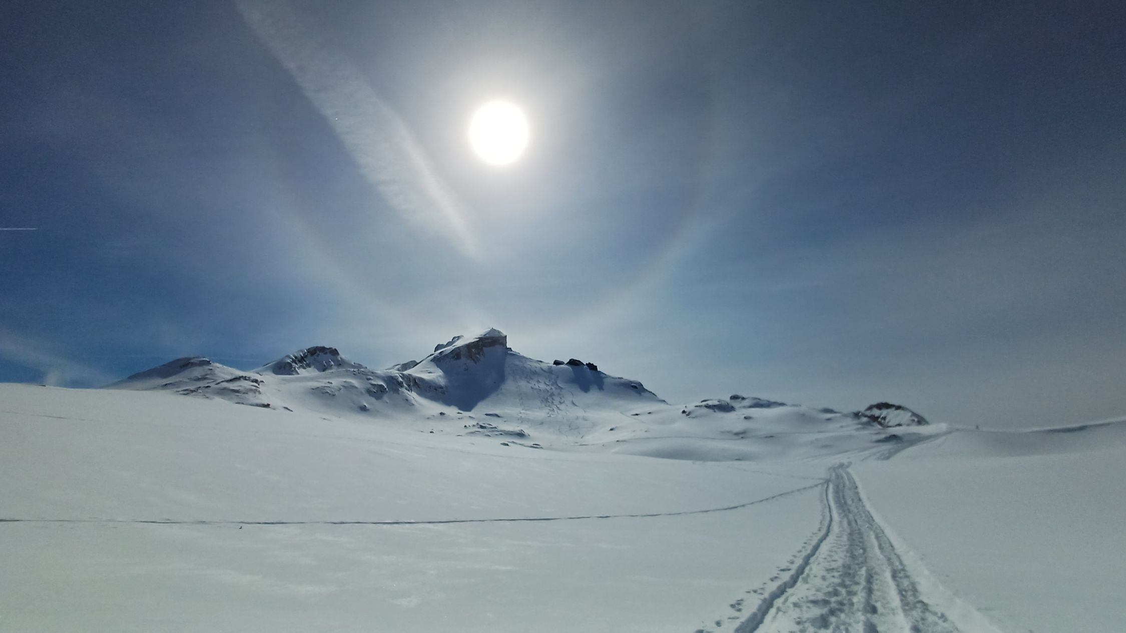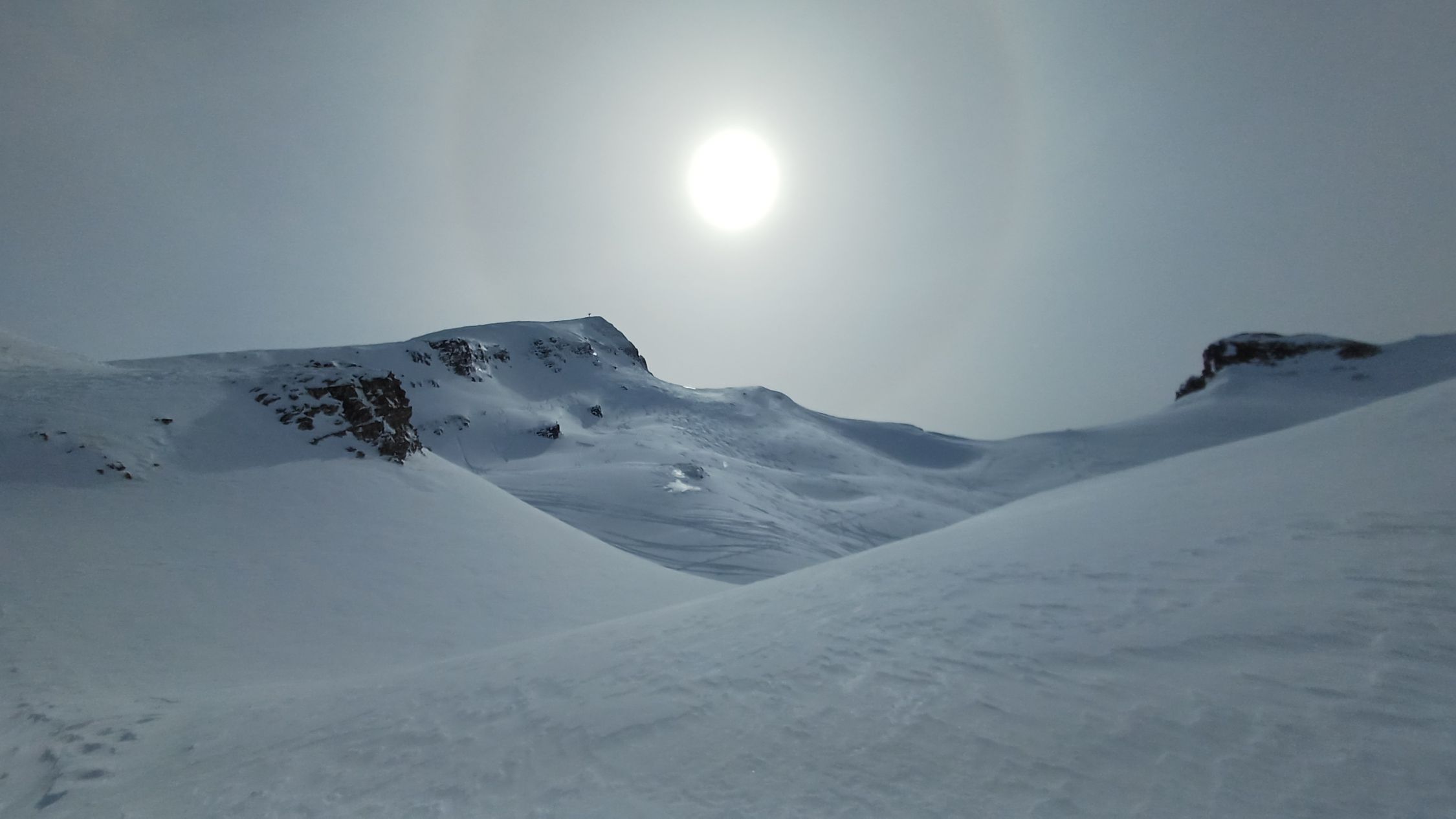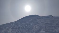 An diesem Traumtag war mir leider erst ein Spätstart nach 13h ab Berghaus Malbun möglich. Kein Nachteil ohne Vorteil - so hatte ich am noch immer sehr vollen Parkplatz beim Berghaus Malbun trotzdem gleich einen Parkplatz gefunden. Von Beginn an empfand ich einen gewissen "Zeitdruck", da mir der bevorstehenden Wetterwechsel bewusst war und bereits vom Nordwesten her eine Schleierbewölkung und darauffolgende Niederschlagsfront herannahte. Der Aufstieg zum Isisizgrat und eigentlich bis auf den Gipfel glich einer Autobahn - meist zwei- öfters sogar dreispurig. Bis zum Isisizgrat leider auch in größeren Teilen zerstört durch absteigende Schneeschuhwander, die offenbar rücksichtslos zu zweit und zu dritt nebeneinander sich der gut angelegten Skitourenspuren bedienten! Vom Grat war die kurze Abfahrt in einer langen Querung auf den Fellen problemlos möglich. Unten angekommen, fellten gerade die letzten Tourengeher für den Gegenanstieg auf. Ab jetzt war ich mausalleine jenseits des Isisizgrat. Da geschätzt der letzte Aufsteigende ca. 1h vor mir am Weg war und durch den anstehenden Wetterwechsel der Wind auffrischte, waren die Spuren zum Teil schon ziemlich zugeblasen und so kostete der restliche Aufstieg etwas mehr Kraft. Der letzte Gipfelaufschwung glich schon einer zerfahrenen Skipiste - kein Wunder beim heutigen Ansturm auf diesen sowieso sehr beliebten Gipfelklassiker der Alvier-Gruppe. Im Gegensatz dazu wirkte nun die Ruhe und Einsamkeit regelrecht gespenstisch und war ein besonderes Erlebnis, welches mir der azyklische Aufstieg bescherte. Bei der folgenden Abfahrt hatte die Sonne etwas erbarmen und schenkte mir durch die inzwischen aufgezogene Schleierbewölkung noch ein passables Licht. Trotz der vielen bereits vorhandenen Spuren waren schöne Powderschwünge möglich, sofern der westlich ausgerichtete Abfahrtsbereich gemieden wurde (Winddeckel). Auf der Rheintaler Seite des Isisizgrat war dann die weitere Abfahrt zum Berghaus Malbun sehr mäßig - hier hatte sich mittlerweile durch die zunehmend verdeckte Sonne ein lästiger Harschdeckel gebildet. Zusammenfassend machten das einsame Touren gegen den Strom gepaart mit der Stimmung des Wetterumschwungs die heutige Tour zu einem außergewöhnlichen Outdoor-Erlebnis.