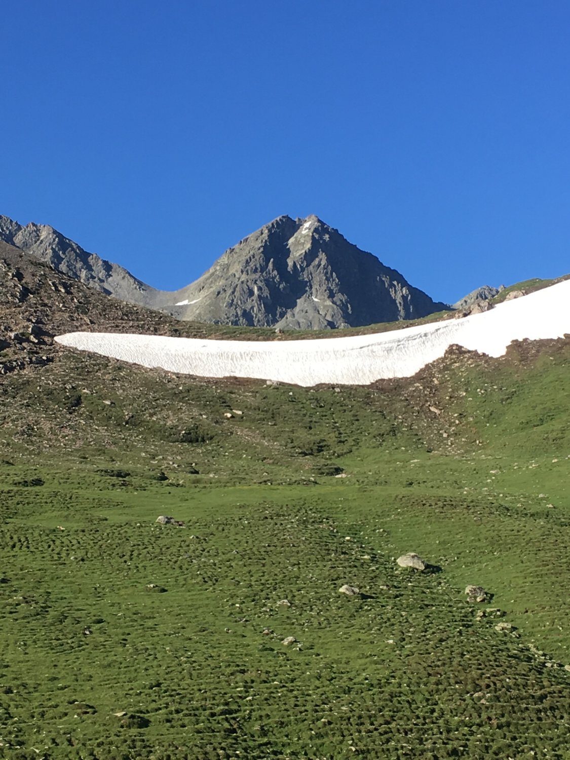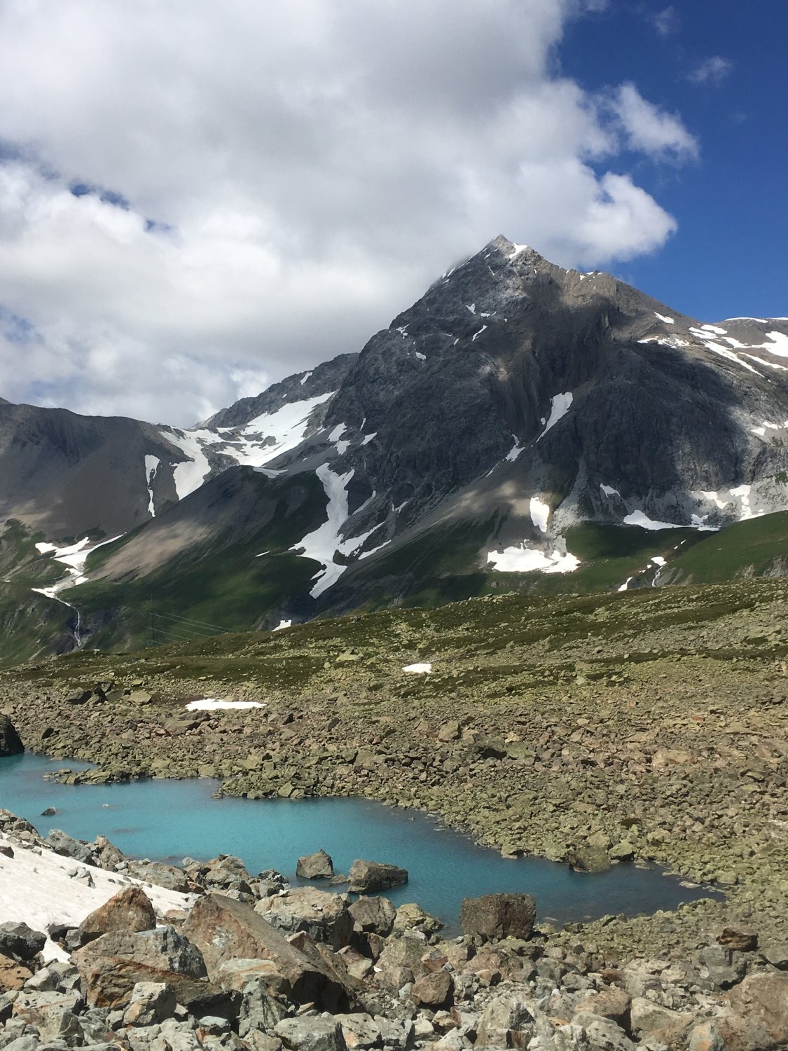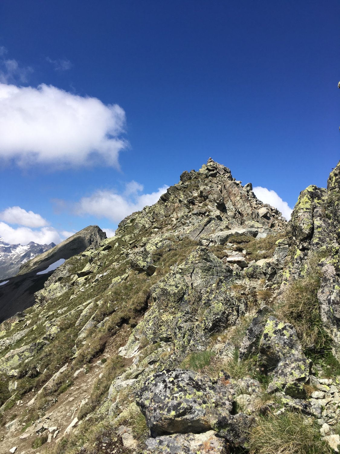 Start Parkplatz Chamanna d´Es-Cha Punta Granda 2255 m, 8 Grad, Nordwind. Bin über Kuhweiden Val Bella bis zum schönen Seelein unterhalb P. 2442 gelaufen. Nun über Blöcke bis zum ersten Schneefeld, die Felsen waren unangenehm rutschig, viele Flechten waren noch nass. Ab Höhe 2550 m über Schneefelder bis unterhalb Fuorcla Taverna 2737, mit kurzen Unterbrechungen, Nun Wegspuren bis Fuorcla Taverna. Wunderschöne Aussicht nach Süden. Nun steil die Ostflanke hinauf, grasbewachsen und hie und da Schutt und Felsen, am besten nahe am Grat bleiben. Abstieg wie Aufstieg, die zahlreichen Schneefelder erleichtern den Auf- und Abstieg sehr. Schöne einsame Tour, bin niemandem begegnet. Aufstieg 3.5, Abstieg 2.5 Stunden. T4.