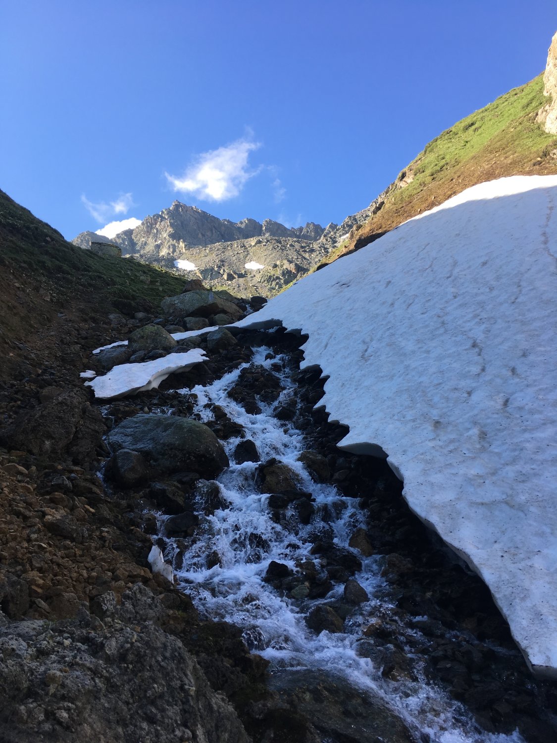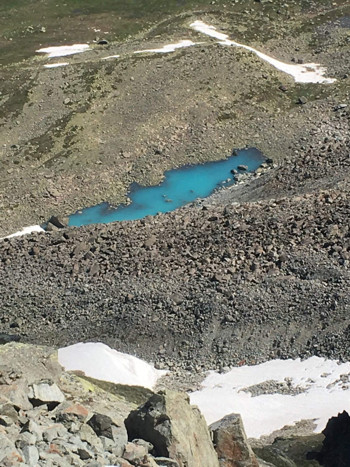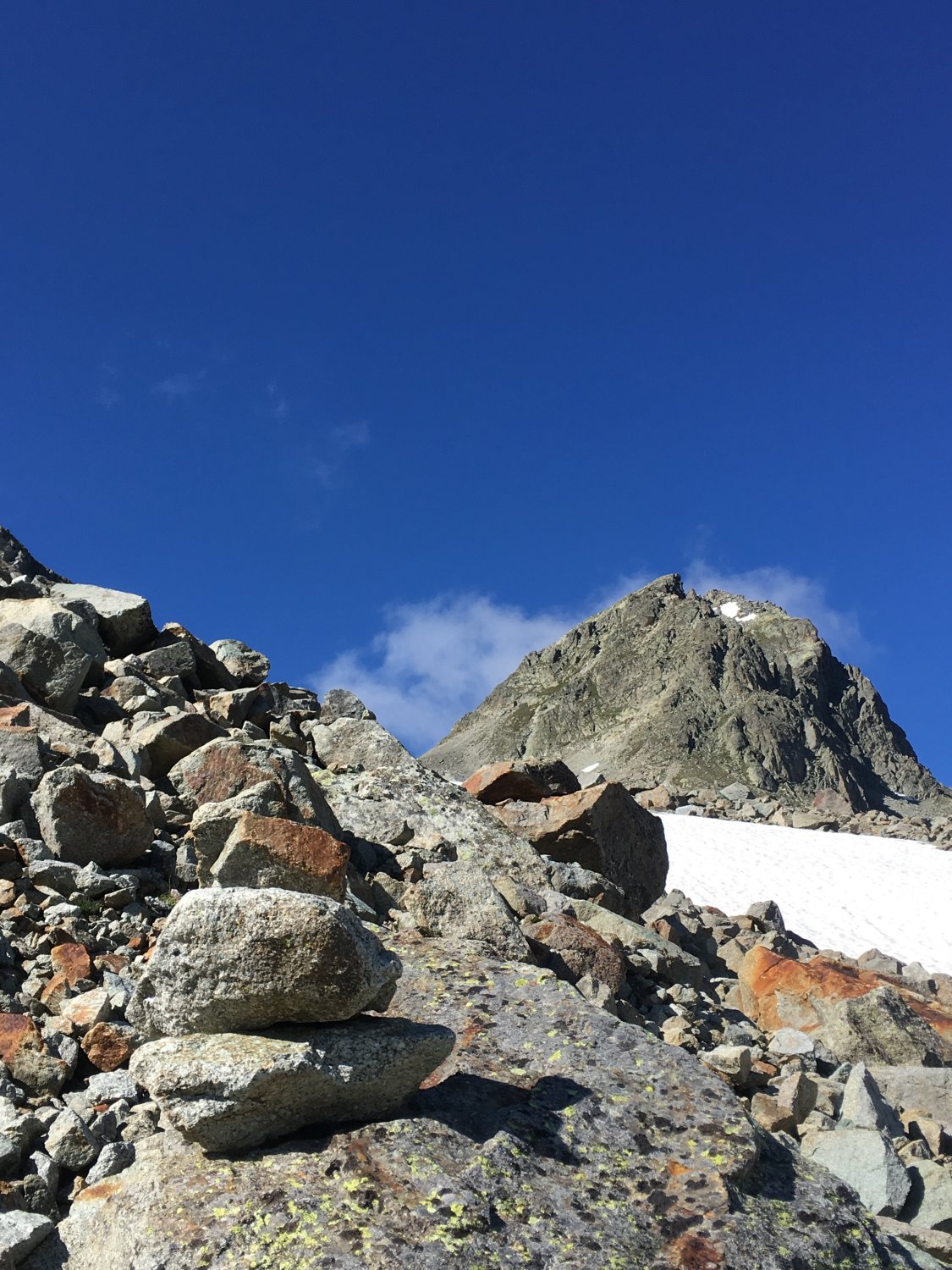 Bleibt in den nächsten Tagen gut. Die Tour nur um Frühsommer unternehmen, wenn noch zahlreiche Schneefelder vorhanden, sonst viele Blöcke und sehr mühsam. Bis fast zuunterst ohne Steigeisen machbar.