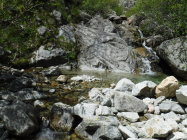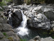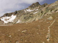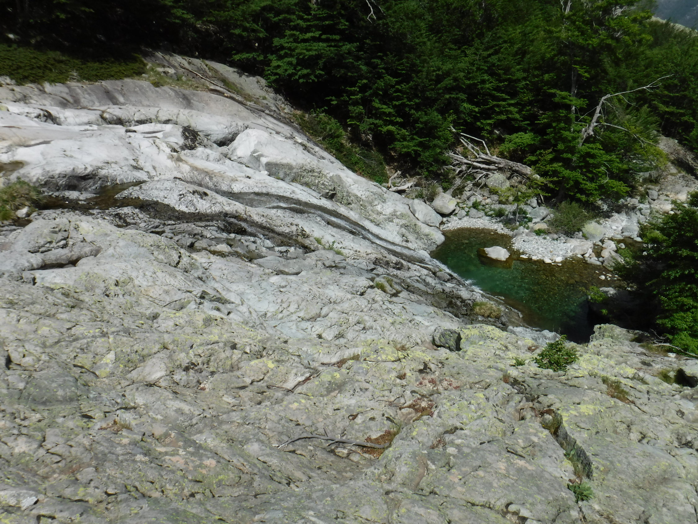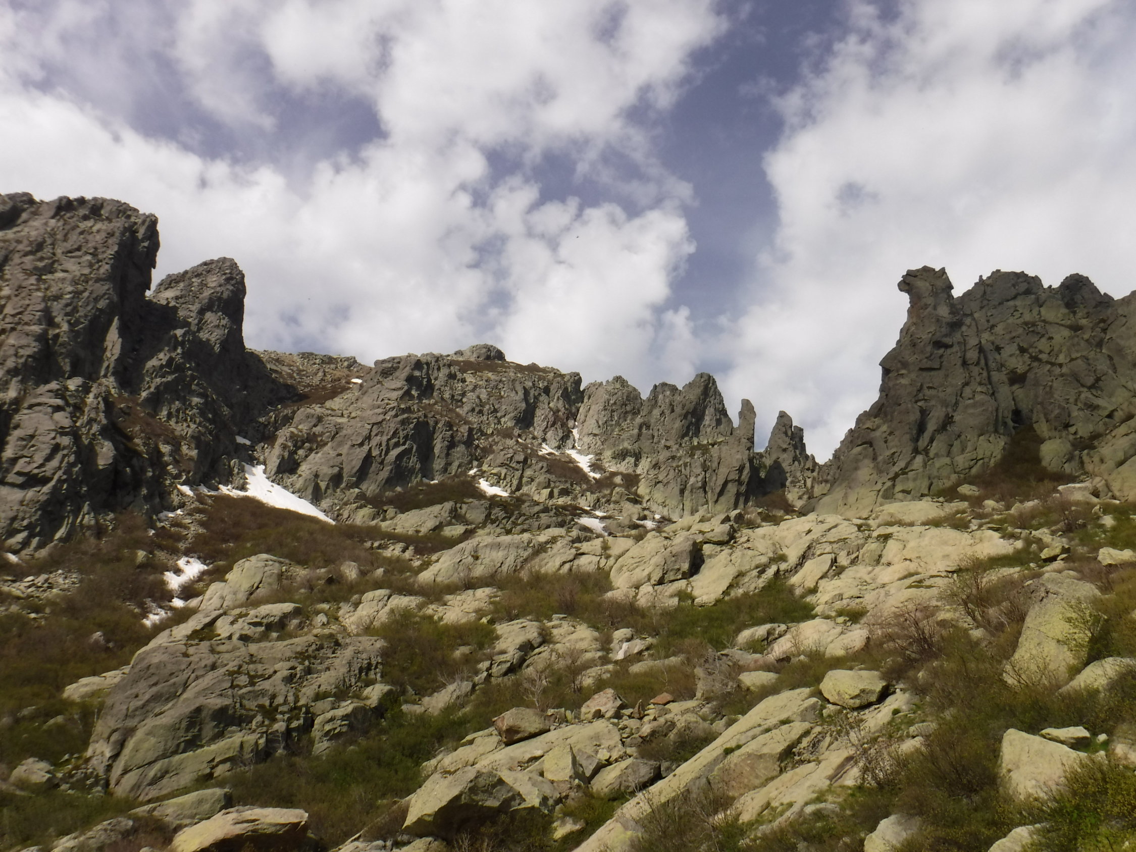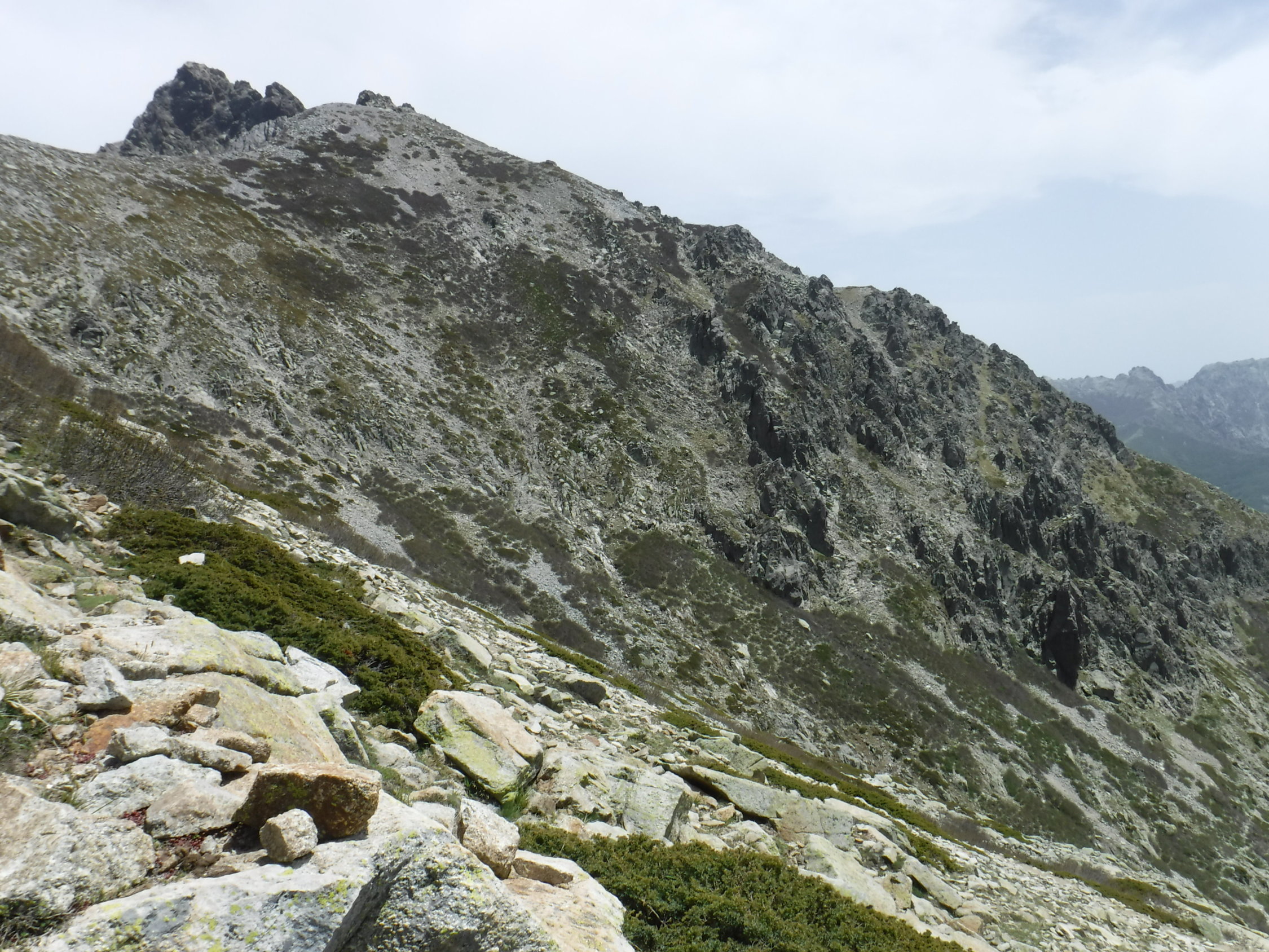 Rundtour: La Foce de Vizzanova – GR20 – P 999 – Bergeries de Pozzatelli – la Scala – P 2190 – Èpaule de la Jonction - Mte. d’ Oro – Èpaule de la Jonction – Bocca di Porco - Sattel P 2064 – GR20 – Pont de Tortetto – Cascade des Anglais – La Foce de Vizzan