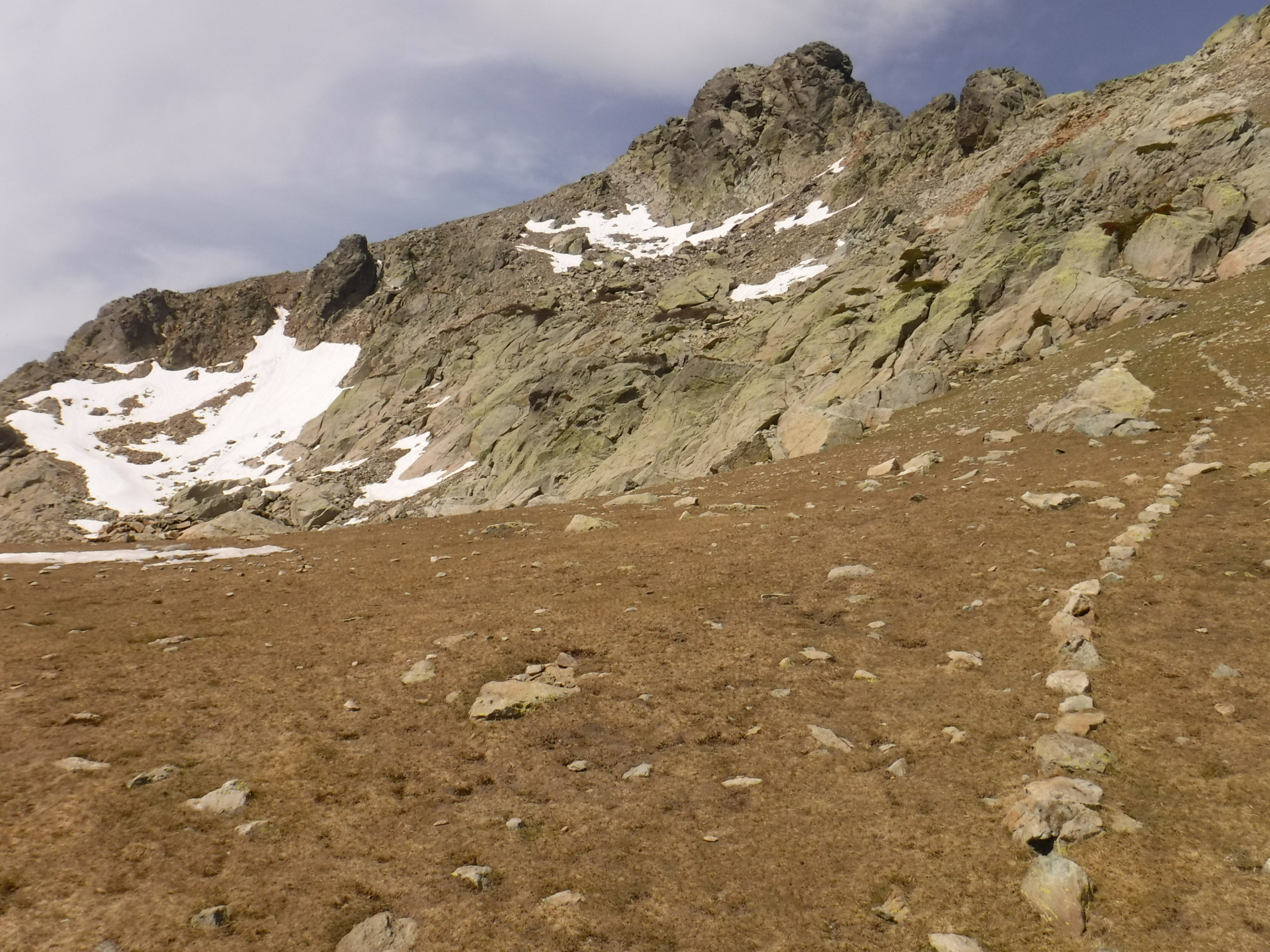 Auf dem Gipfel 4 Leute angetroffen, die über die Crete de Muratello aufstiegen. Im Aufstieg überholte mich ein Trailrunner in Turnschuhen, der rechts vom NO-Couloir über felsiges Gelände hinauf kletterte.