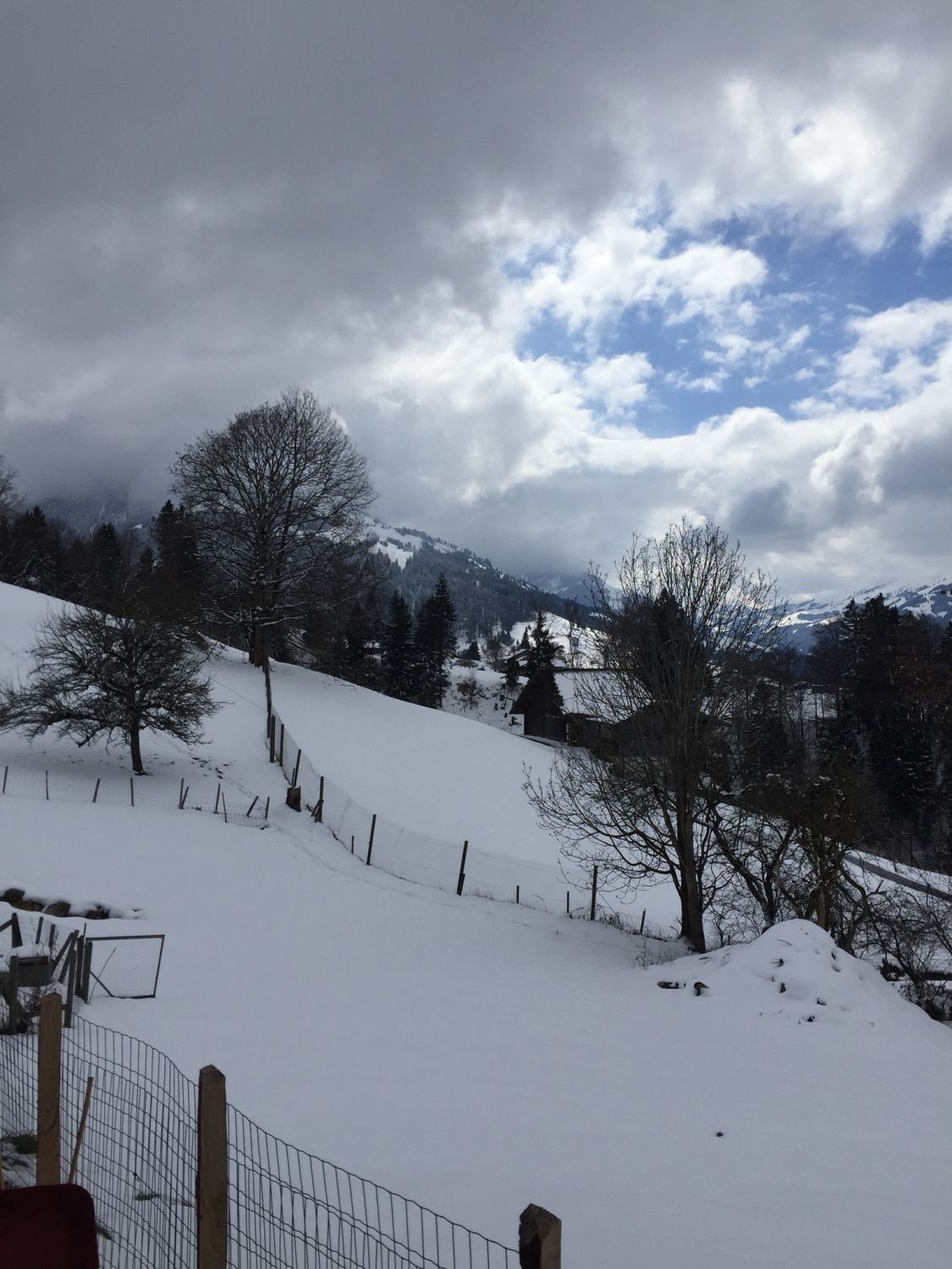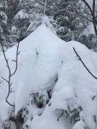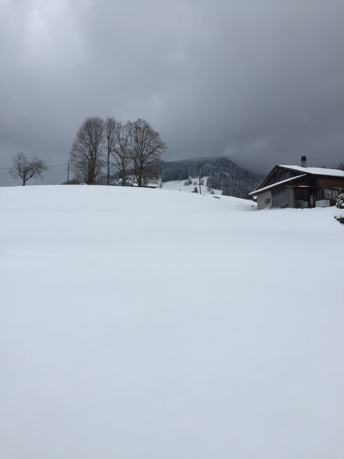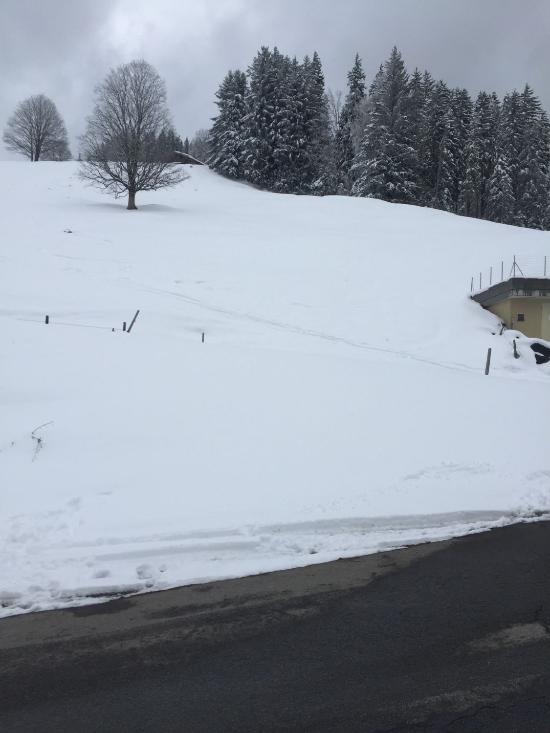 Später Start um 14.45. Temperatur knapp über Null. Wetter verhangen. Beim Start auf 900 m.ü.M 20-30 cm Nassschnee. Ab 1200 in Pulver übergehend. Oben 50 cm Pulver eher Feucht. Gut fahrbar!