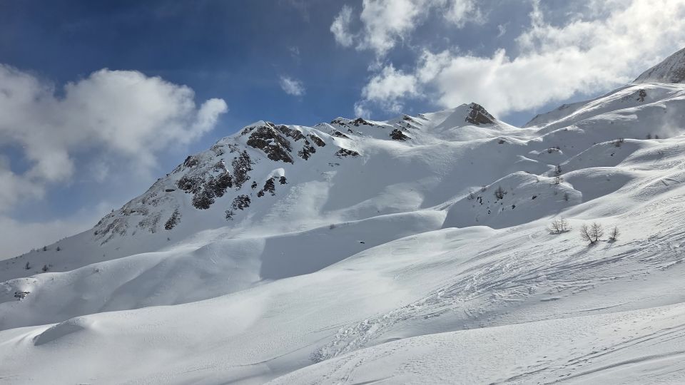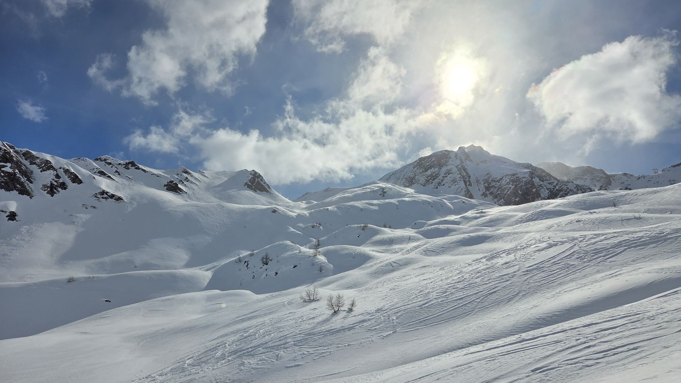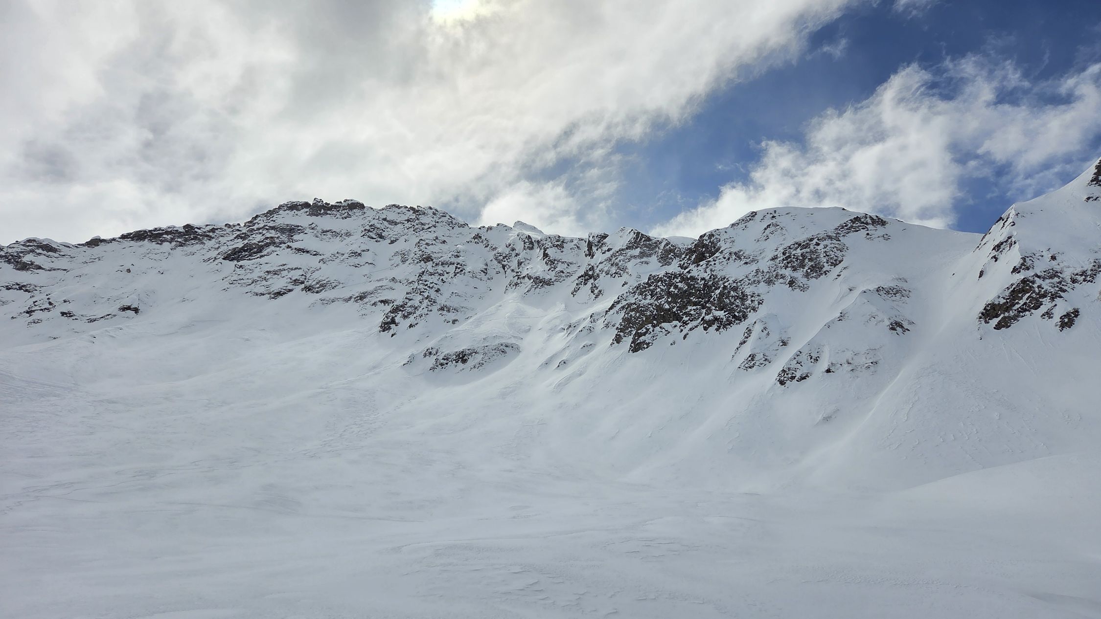 Start bei knapp unter Null, und etwas Wind, mehrheitlich sonnig, aber mit vorbeiziehenden Wolken. Gute Spur bis ca 2100m. Ab da selber gespurt über den Rücken im stärker werdenden Wind. Steilstufe auf ca 2500m geht problemlos, kein Triebschnee darin. Weiter bis zum Skidepot. Ab da ginge es noch ca 15Hm in gutem Trittschnee auf den Gipfel. Wir verzichteten wegen des starken Windes darauf. Es war uns schlicht zu kalt. Abfahrt bis Punkt 2445 eine Mischung aus Hartschnee, kompakten Pulver, etwas Winddeckel. Passabel zu fahren. Dann ins Val Cavagnolo gequert, was gut ging (kaum Triebschnee, ausser in den verlockenden, steilen Mulden). Letztere ausgelassen und in schönem Presspulver abgefahren. Unter heraus eher schwerer Schnee, aber gut zu fahren. Hat Spass gemacht.