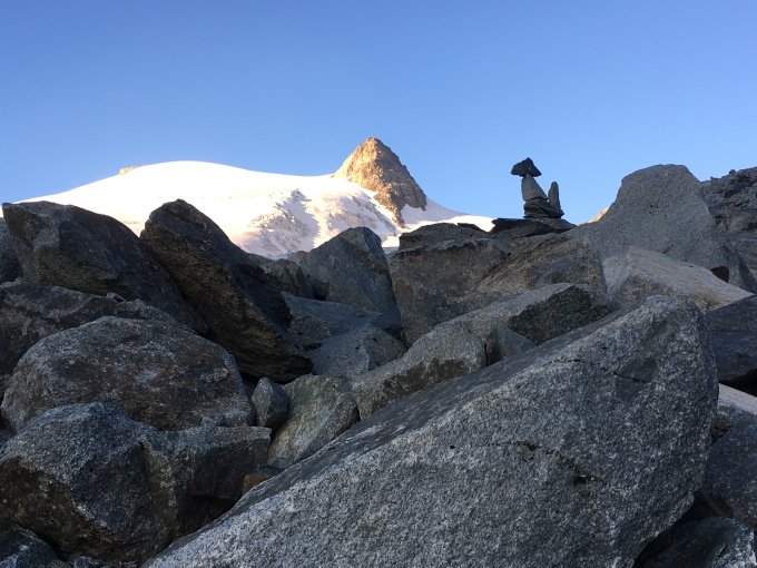 Die Gletscher sind noch sehr gut eingeschneit und wunderbar zu gehen, wir haben nicht einmal Steigeisen verwendet. Der Fels ist trocken und perfekt zum Klettern.