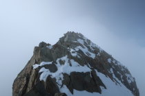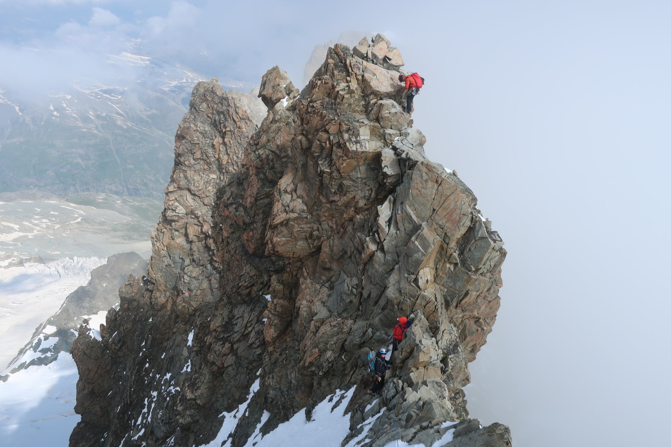 Es war recht angenehm am Freitag. Nur 7 Seilschaften unterwegs. Wetter hätte etwas besser sein können. Es drückte immer wieder Nebelfetzen über den Grat und Gipfel. Teils sonnig und schön.