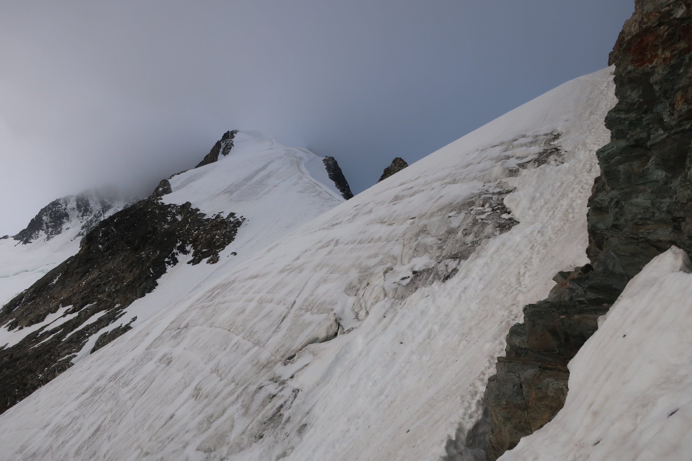 Wird am Grat kurz vielleicht besser, wenn sich der Schnee festigt und firnt.