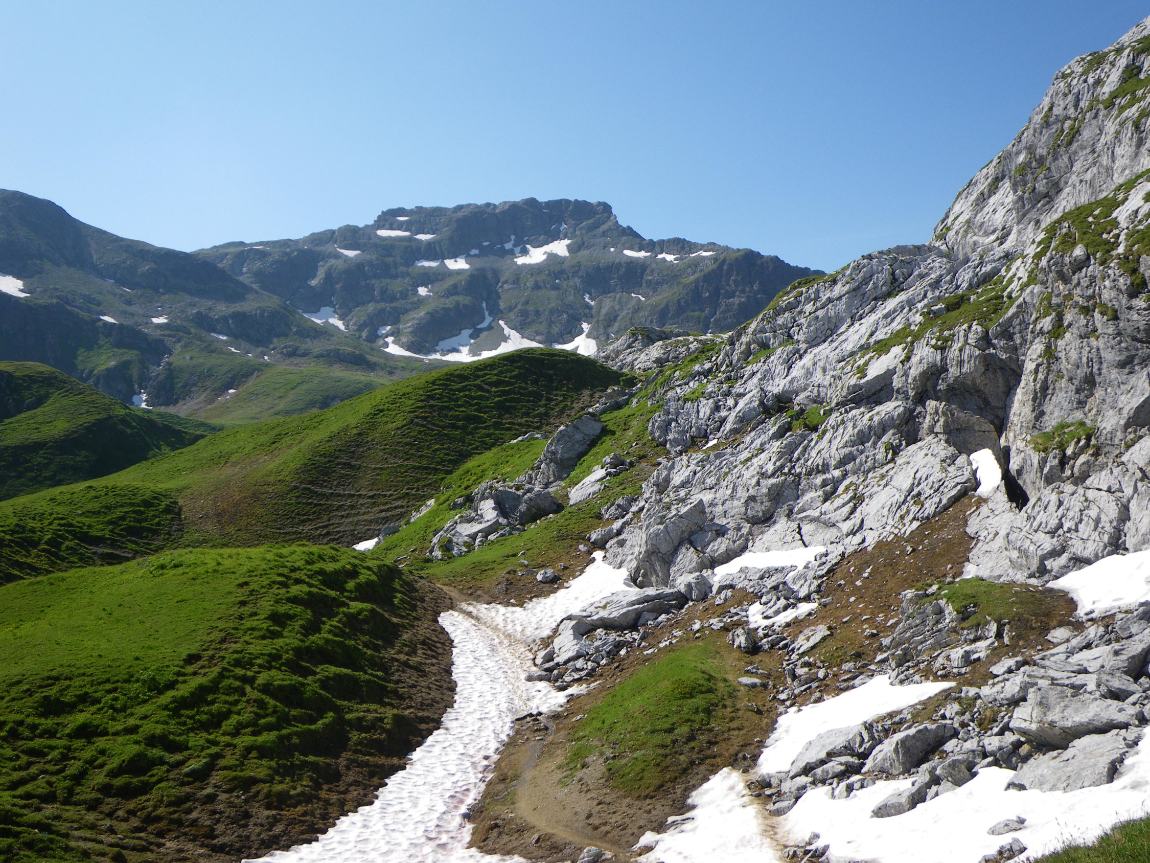 Mehrheitlich alles trocken nur 2 kleine Schneefelder sind zu überqueren.