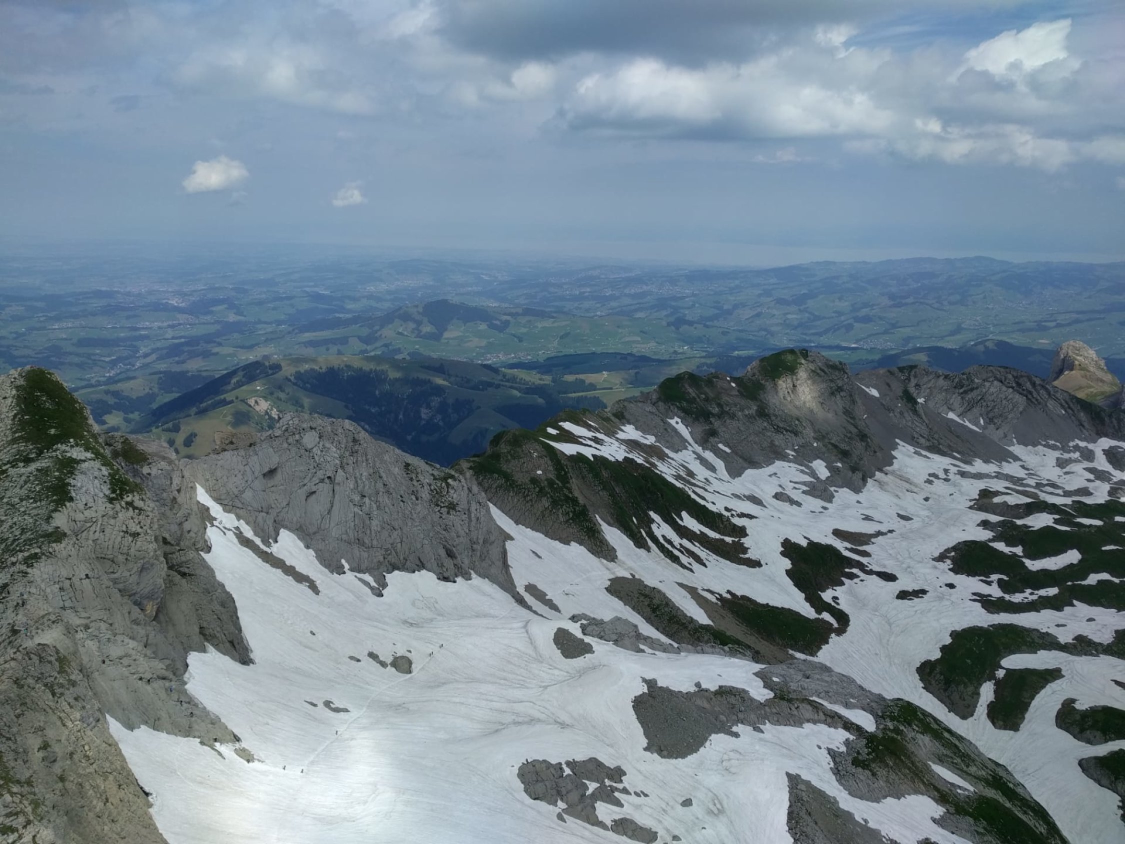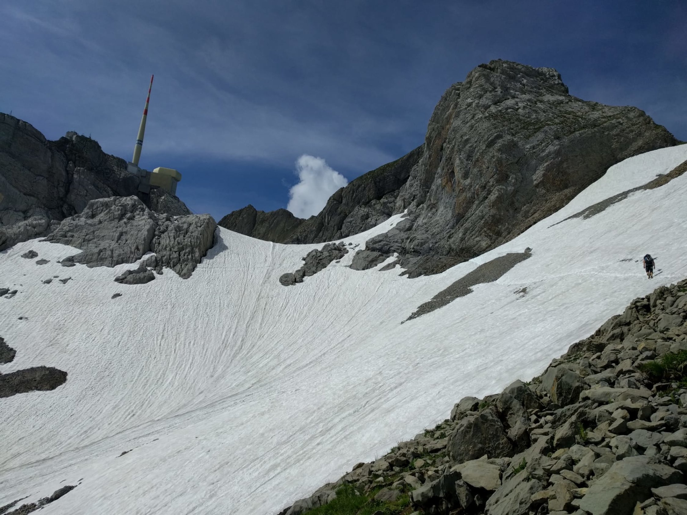 Start um 7:00 auf der Schwägalp, ganze Strecke trocken, bis zu den Nasenlöchern nicht ausgesetzt, die Kraxelei nachher erfordert meines Erachtens dann aber schon volle Aufmerksamkeit und Bergerfahrung, Ausrutschen definitiv verboten. Der Zustieg zum Öhrli ist schlüssig und für Schwindelfreie technisch einfach. Yours truly hat auf die Hilfe der flotten Bergführerin (merci D.) zurückgegriffen und es so doch auch noch auf den Gipfel geschafft :-) Nachher unschwierig über Rossegg und Girenspitzsattel/Himmelsleiter auf den Seentis.