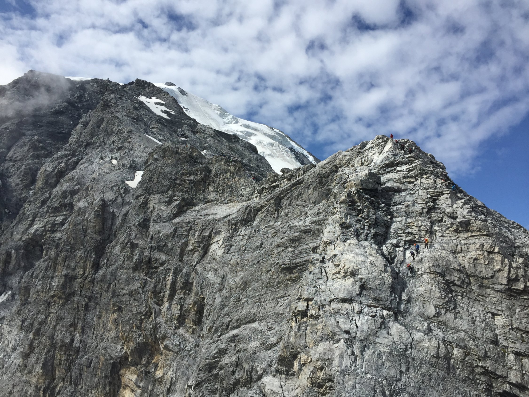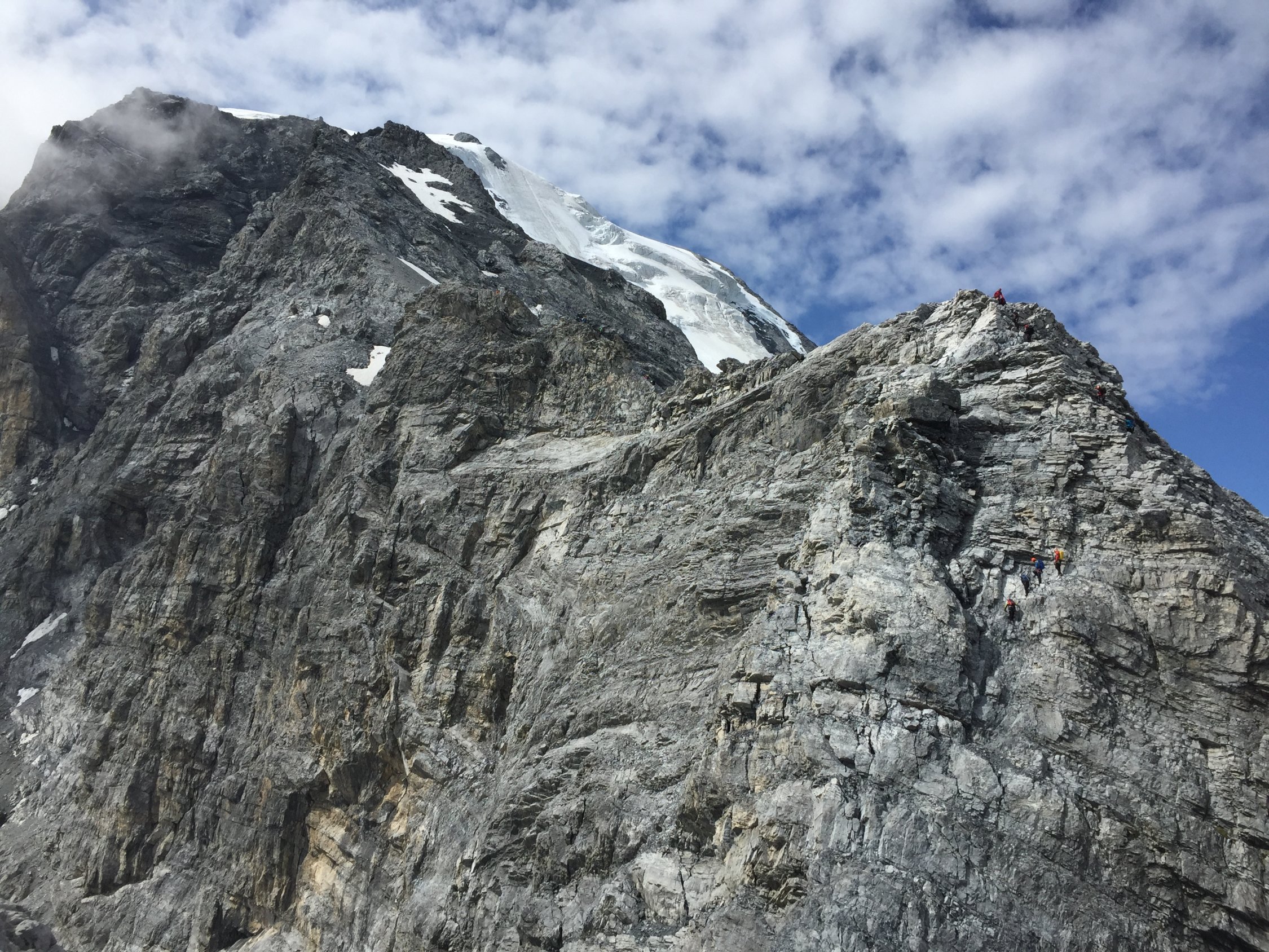 Es liegt noch relativ viel Schnee, dadurch Aufstieg zum Grat teilweise im Firn. Fels trocken. Die Hauptschwierigkeit der 4er stellen liegt in der Abgespecktheit. Normalweg gute Verhältnisse, teilweise ist das Eis nicht weit.