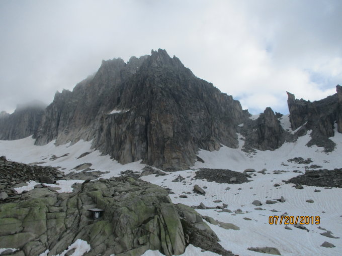Spät ist´s geworden mit unserer Rückkehr auf den Furkapass, und somit bekamen wir auch den vorhergesagten Nachmittagsschauer in Form von Hagel während des Abseilens volle Kanne ab. Eigentlich nicht vorhergesagt war das ganztägig über und um die Gipfel herumschwabbelnde Gewölk, welches einerseits die sonst so prächtige Aussicht minderte, andererseits uns ein hochsommerliches Hitzeklettern erspart blieb. Der Hagelschauer war zwar ein recht unangenehmes Erlebnis, doch glücklicherweise blieb das Ganze ohne elektrische Ladung, abgesehen von einem einmaligen Donnergrollen.