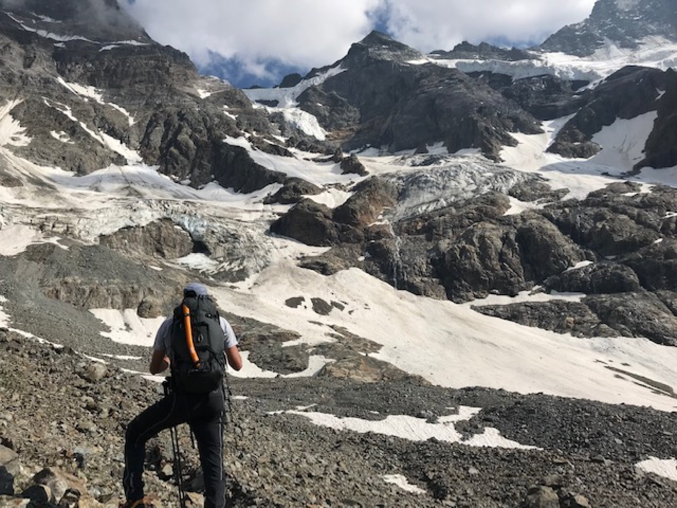 Der Rückzug des hintern Schmadrigletschers mit seinen heutigen Verschrundungen und Abbrüchen bei der Gletscherzunge führt am Anfang der Tour zu erschwerten Bedingungen.