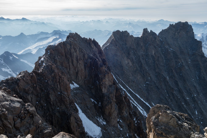 Schöne, lange Grattour mit etwas mühsamem Abstieg vom Lauteraarhorn. Zuvorkommende Bewartung und hervorragendes (griechisches) Essen auf der Schreckhornhütte.