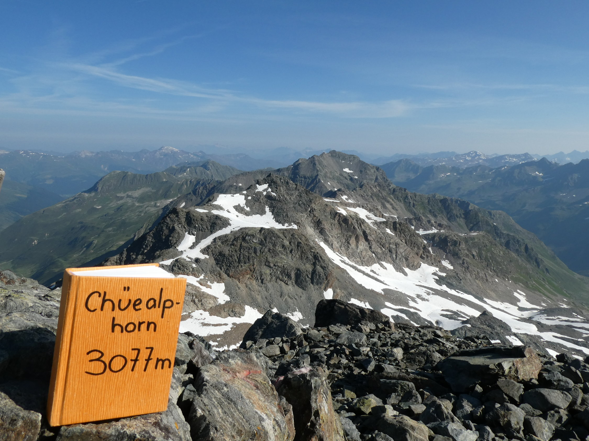 Zwei Jahre nachdem ich erstmals auf dem Chüealphorn stand, zog es mich wieder auf diesen schönen Aussichtsgipfel. Damals war der Chüealpgletscher am 1.August komplett blank.