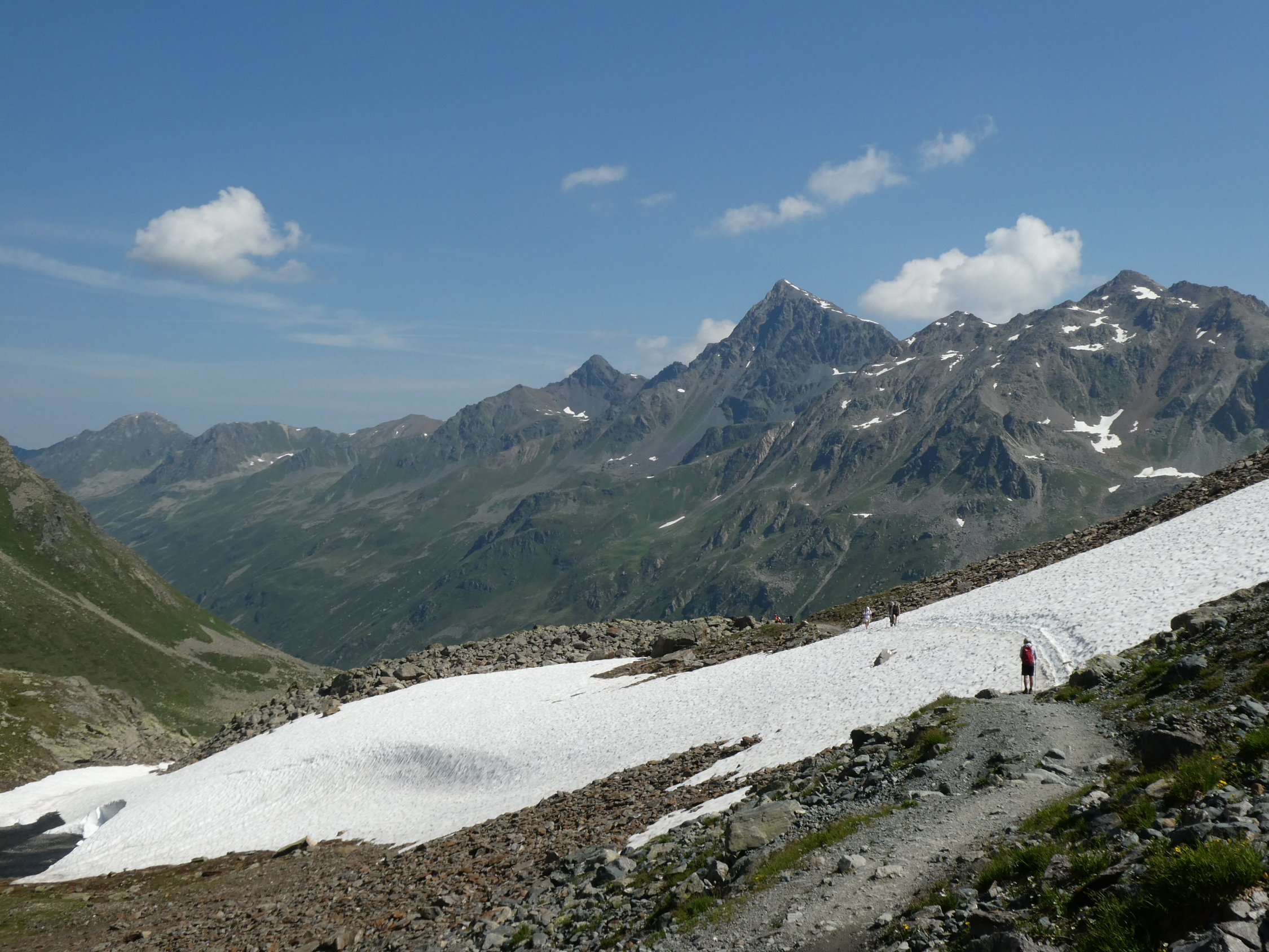 Der Wanderweg zum Scalettapass ist bestens begehbar, unterhalb der Passhöhe liegen noch zwei gut gespurte Schneefelder.