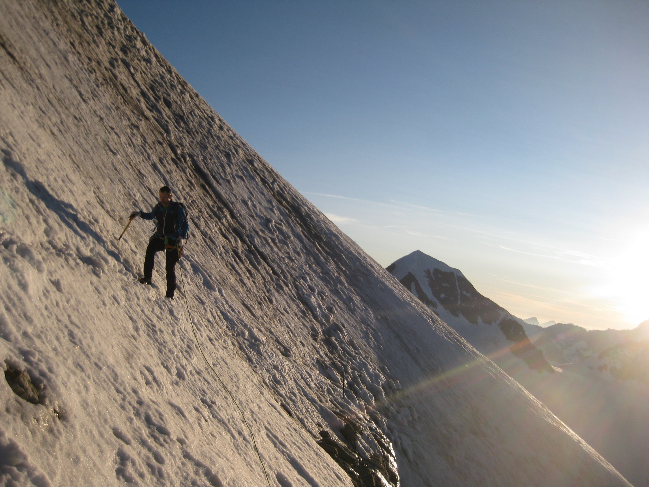Auch das Finsteraarhorn hat momentan ausgezeichnete Verhältnisse.