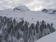 Genügend Schnee, Schlüsselstelle bei 1350 m derzeit gut zu machen. Oberhalb der Waldgrenze z. T. windgepresster Pulver. Einige gute Pulverhänge und leider auch einige Flachstücke.