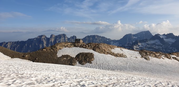 Start der Tour am 6 Uhr beim oberen Parkplatz Umpol , der Hüttenweg zur Tierberglihütte gut trocken mit 1-2 kleinen Schneefeldern, beim den flächeren passagen viel Büsserschnee, kurz unterhalb dem Gipfel eine grosse Blankeisstelle, dort einmal kurz Steigeisen montiert, beim direkten Aufstieg durch die Ostflanke öffnen sich die Spalten, besser den Bogen machen in Richtung Sustenlimi in die Sustenhorn Route , die Gletscher werden langsam aber sicher blank, kältere Temperaturen oder Neuschnee währem oben raus sehr gut.