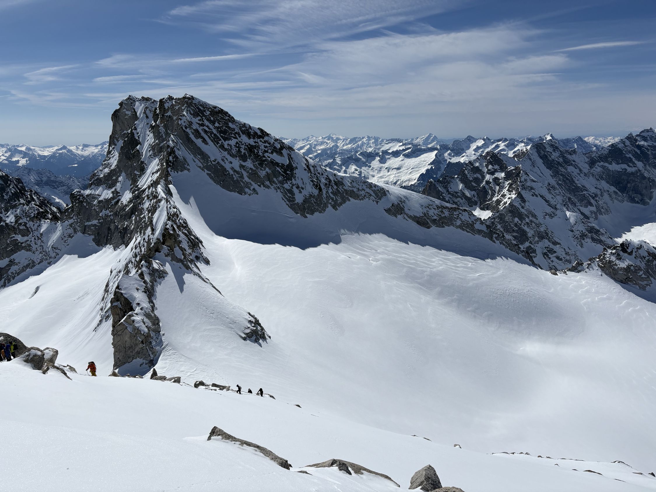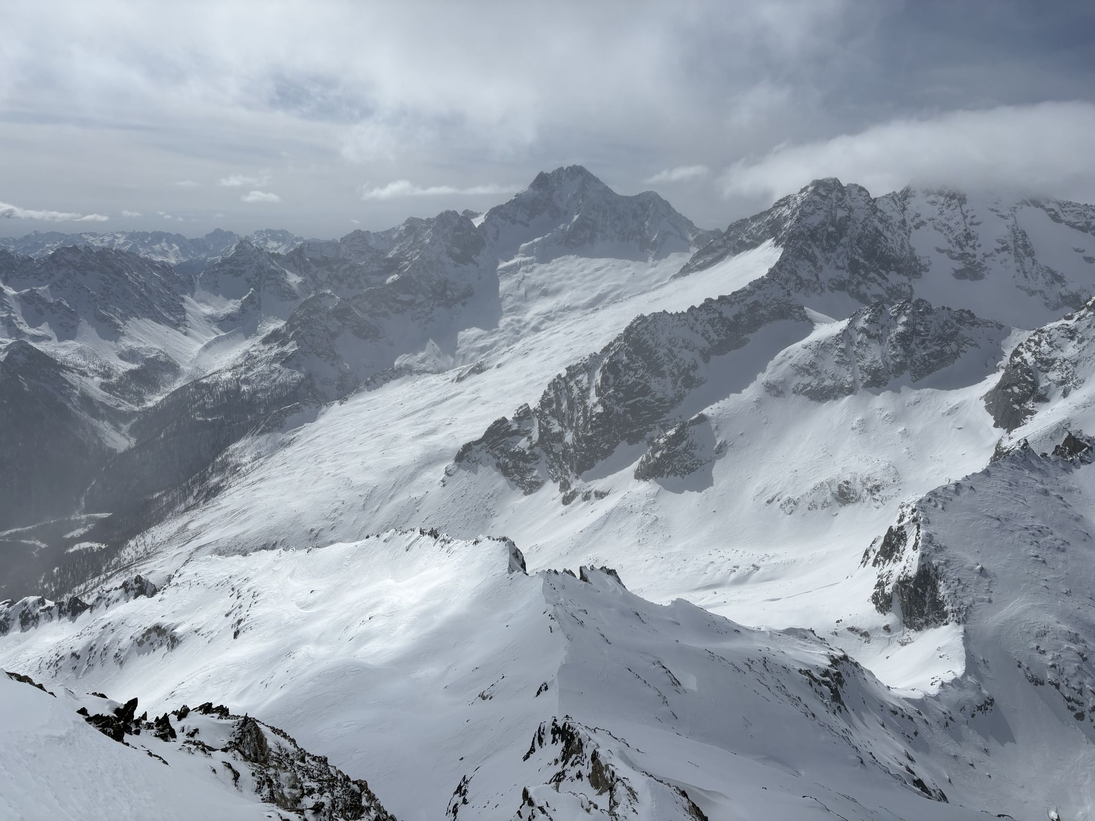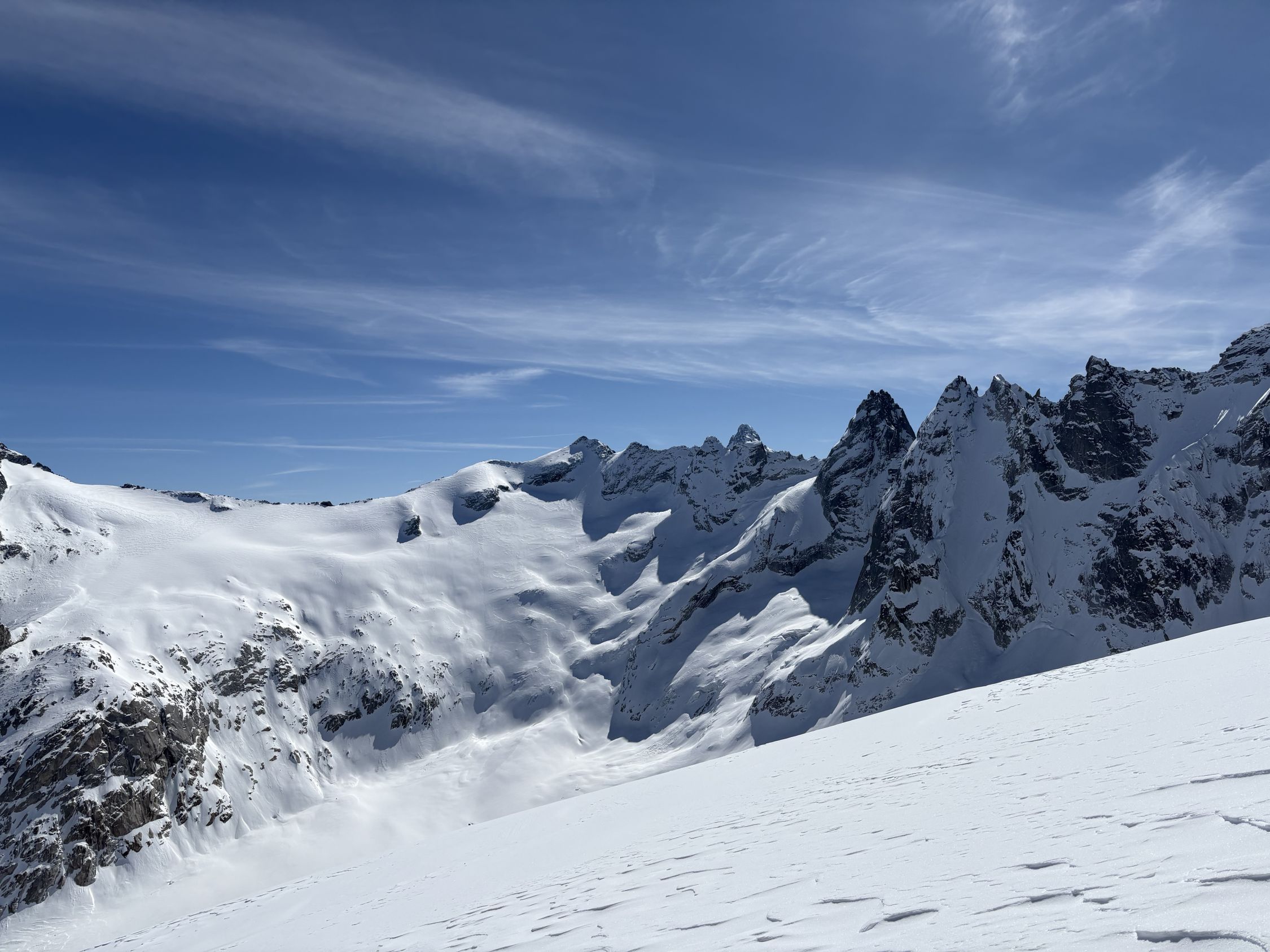 Der gesamte östliche Bereich des Gletscherbeckens von Cima di Rosso bis Monte Sissone war bis gestern noch nicht begangen, diese Seite war stark vom Wind beeinflusst.