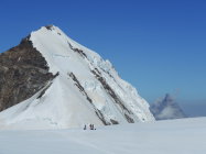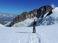 Perfekter Trittfirn ab Rifugio Gnifetti, kein Einsinken, überall Spuren vorhanden. Davor waren wir noch auf der Vincent Pyramide 4215m, ebenso perfekte Verhältnisse